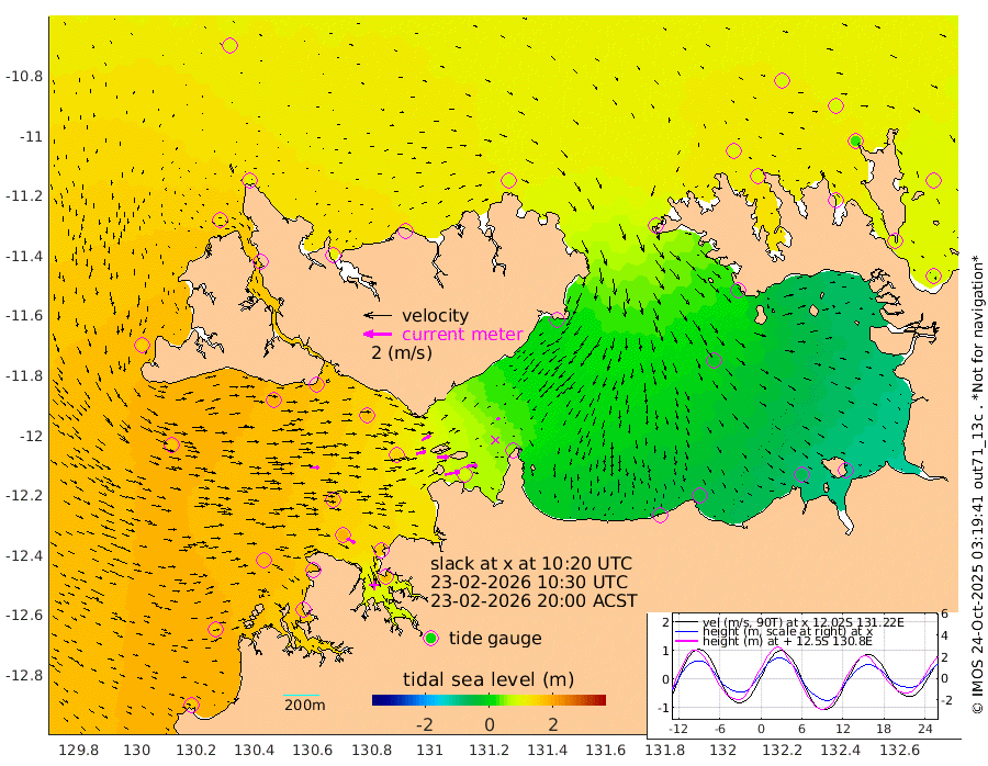 107cm/s 79T +4cm/s rms + 6cm/s 51T. Darwin_C1 52m 79cm/s 86T +4cm/s rms + 7cm/s -161T. Darwin_CW1 22m 69cm/s 74T +4cm/s rms + 8cm/s 61T. Darwin_CW2 34m 25cm/s 59T +3cm/s rms + 9cm/s 98T. Darwin_CW3 22m 85cm/s 88T +5cm/s rms + 7cm/s 88T. Darwin_C3 56m 70cm/s 63T +2cm/s rms + 9cm/s -126T. Darwin_CTbW 22m 67cm/s 90T +1cm/s rms + 1cm/s -47T. DARBGF 30m 65cm/s 120T +4cm/s rms + 3cm/s 80T. NRSDAR 19m 95cm Goodrich Bank 163cm Point Jenny 167cm Native Point 176cm Fish Reef 174cm Tapa Bay 148cm Point Fawcett (Offshore) 178cm Burge Point 182cm Munkunuwa 167cm Beagle A 174cm Parsons Bank 173cm Fenton Patches 149cm Hancox Shoal Area 160cm Nightcliff 178cm Darwin 184cm Charles Point Patches 83cm Glyde Point -22cm Chambers Bay -39cm Point Stuart 46cm Cape Hotham -20cm Christine Reef -57cm West Alligator Head -98cm East Field Island 10cm Two Hills Bay 13cm Camp Point 181cm Medina Inlet South 152cm South Barlow Point 128cm St. Asaph Bay 103cm Cape Van Dieman 112cm Snake Bay 95cm Cache Point 88cm Point Jahleel (Off) 76cm Cape Don 93cm Port Essington 94cm Smith Point - West 89cm NW Peacock Island 84cm North Of Jones Shoal 30cm Peacock Island 80cm Point David 95cm D'urville Point 75cm Copeland Island 80cm One Tree Point