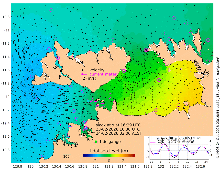 120cm/s -102T +4cm/s rms + 6cm/s 51T. Darwin_C1 52m 85cm/s -89T +4cm/s rms + 7cm/s -161T. Darwin_CW1 22m 84cm/s -107T +4cm/s rms + 8cm/s 61T. Darwin_CW2 34m 32cm/s -118T +3cm/s rms + 9cm/s 98T. Darwin_CW3 22m 100cm/s -93T +5cm/s rms + 7cm/s 88T. Darwin_C3 56m 70cm/s -116T +2cm/s rms + 9cm/s -126T. Darwin_CTbW 22m 81cm/s -90T +1cm/s rms + 1cm/s -47T. DARBGF 30m 76cm/s -59T +4cm/s rms + 3cm/s 80T. NRSDAR 19m -114cm Goodrich Bank -181cm Point Jenny -183cm Native Point -186cm Fish Reef -186cm Tapa Bay -177cm Point Fawcett (Offshore) -181cm Burge Point -195cm Munkunuwa -180cm Beagle A -173cm Parsons Bank -173cm Fenton Patches -150cm Hancox Shoal Area -164cm Nightcliff -173cm Darwin -191cm Charles Point Patches -67cm Glyde Point 41cm Chambers Bay 70cm Point Stuart -27cm Cape Hotham 33cm Christine Reef 90cm West Alligator Head 139cm East Field Island 11cm Two Hills Bay 7cm Camp Point -189cm Medina Inlet South -171cm South Barlow Point -156cm St. Asaph Bay -122cm Cape Van Dieman -123cm Snake Bay -115cm Cache Point -101cm Point Jahleel (Off) -79cm Cape Don -101cm Port Essington -104cm Smith Point - West -95cm NW Peacock Island -99cm North Of Jones Shoal -34cm Peacock Island -68cm Point David -99cm D'urville Point -62cm Copeland Island -73cm One Tree Point