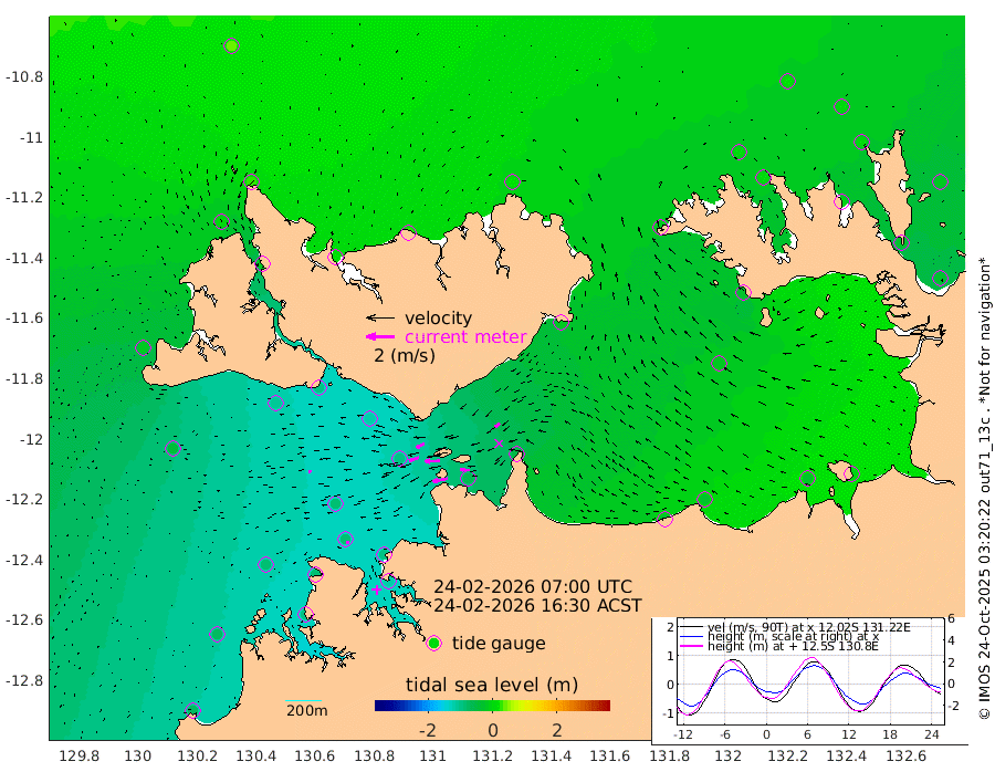 108cm/s -102T +4cm/s rms + 6cm/s 51T. Darwin_C1 52m 62cm/s -89T +4cm/s rms + 7cm/s -161T. Darwin_CW1 22m 74cm/s -108T +4cm/s rms + 8cm/s 61T. Darwin_CW2 34m 41cm/s -127T +3cm/s rms + 9cm/s 98T. Darwin_CW3 22m 102cm/s -92T +5cm/s rms + 7cm/s 88T. Darwin_C3 56m 62cm/s -115T +2cm/s rms + 9cm/s -126T. Darwin_CTbW 22m 23cm/s -97T +1cm/s rms + 1cm/s -47T. DARBGF 30m 19cm/s -81T +4cm/s rms + 3cm/s 80T. NRSDAR 19m 34cm Goodrich Bank -70cm Point Jenny -71cm Native Point -81cm Fish Reef -88cm Tapa Bay -16cm Point Fawcett (Offshore) -97cm Burge Point -106cm Munkunuwa -44cm Beagle A -118cm Parsons Bank -83cm Fenton Patches -101cm Hancox Shoal Area -98cm Nightcliff -114cm Darwin -89cm Charles Point Patches -63cm Glyde Point -26cm Chambers Bay -29cm Point Stuart -50cm Cape Hotham -21cm Christine Reef -30cm West Alligator Head -6cm East Field Island -33cm Two Hills Bay -19cm Camp Point -93cm Medina Inlet South -19cm South Barlow Point 9cm St. Asaph Bay 28cm Cape Van Dieman 19cm Snake Bay 31cm Cache Point 15cm Point Jahleel (Off) -16cm Cape Don 1cm Port Essington 1cm Smith Point - West 2cm NW Peacock Island 20cm North Of Jones Shoal 4cm Peacock Island -23cm Point David -6cm D'urville Point -25cm Copeland Island -17cm One Tree Point