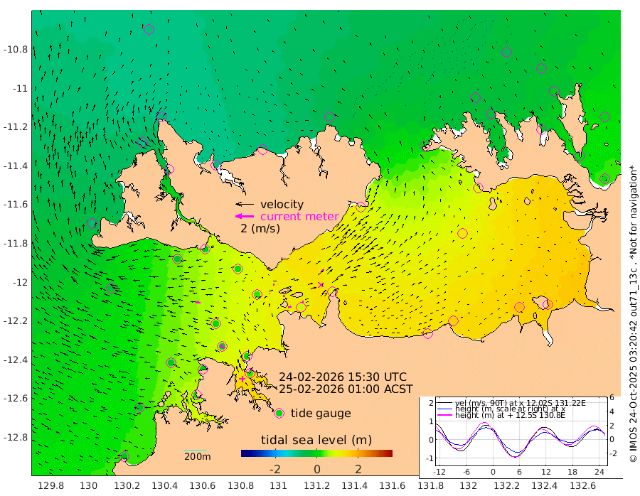 32cm/s 80T +4cm/s rms + 6cm/s 51T. Darwin_C1 52m 17cm/s 84T +4cm/s rms + 7cm/s -161T. Darwin_CW1 22m 4cm/s 42T +4cm/s rms + 8cm/s 61T. Darwin_CW2 34m 36cm/s 42T +3cm/s rms + 9cm/s 98T. Darwin_CW3 22m 22cm/s 95T +5cm/s rms + 7cm/s 88T. Darwin_C3 56m 16cm/s 62T +2cm/s rms + 9cm/s -126T. Darwin_CTbW 22m 50cm/s -85T +1cm/s rms + 1cm/s -47T. DARBGF 30m 59cm/s -54T +4cm/s rms + 3cm/s 80T. NRSDAR 19m -86cm Goodrich Bank -23cm Point Jenny -25cm Native Point -18cm Fish Reef -10cm Tapa Bay -81cm Point Fawcett (Offshore) 4cm Burge Point -27cm Munkunuwa -40cm Beagle A 17cm Parsons Bank 4cm Fenton Patches 29cm Hancox Shoal Area 18cm Nightcliff 26cm Darwin -7cm Charles Point Patches 69cm Glyde Point 126cm Chambers Bay 150cm Point Stuart 86cm Cape Hotham 114cm Christine Reef 171cm West Alligator Head 196cm East Field Island 99cm Two Hills Bay 88cm Camp Point -17cm Medina Inlet South -82cm South Barlow Point -95cm St. Asaph Bay -88cm Cape Van Dieman -82cm Snake Bay -78cm Cache Point -53cm Point Jahleel (Off) -1cm Cape Don -42cm Port Essington -42cm Smith Point - West -35cm NW Peacock Island -59cm North Of Jones Shoal -18cm Peacock Island 9cm Point David -32cm D'urville Point 15cm Copeland Island -1cm One Tree Point