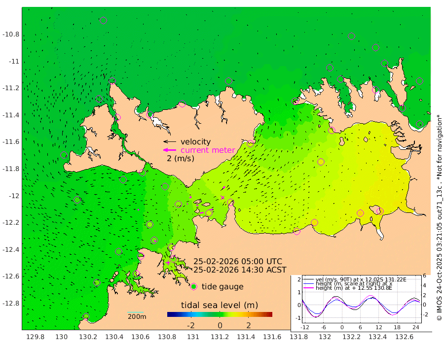 54cm/s 79T +4cm/s rms + 6cm/s 51T. Darwin_C1 52m 57cm/s 91T +4cm/s rms + 7cm/s -161T. Darwin_CW1 22m 8cm/s 79T +4cm/s rms + 8cm/s 61T. Darwin_CW2 34m 40cm/s 42T +3cm/s rms + 9cm/s 98T. Darwin_CW3 22m 29cm/s 94T +5cm/s rms + 7cm/s 88T. Darwin_C3 56m 31cm/s 68T +2cm/s rms + 9cm/s -126T. Darwin_CTbW 22m 21cm/s -80T +1cm/s rms + 1cm/s -47T. DARBGF 30m 27cm/s -53T +4cm/s rms + 3cm/s 80T. NRSDAR 19m -23cm Goodrich Bank 41cm Point Jenny 36cm Native Point 33cm Fish Reef 40cm Tapa Bay 2cm Point Fawcett (Offshore) 46cm Burge Point 14cm Munkunuwa 30cm Beagle A 32cm Parsons Bank 48cm Fenton Patches 51cm Hancox Shoal Area 58cm Nightcliff 44cm Darwin 35cm Charles Point Patches 73cm Glyde Point 121cm Chambers Bay 124cm Point Stuart 80cm Cape Hotham 120cm Christine Reef 141cm West Alligator Head 162cm East Field Island 88cm Two Hills Bay 87cm Camp Point 27cm Medina Inlet South -20cm South Barlow Point -15cm St. Asaph Bay -26cm Cape Van Dieman -32cm Snake Bay -13cm Cache Point -5cm Point Jahleel (Off) 23cm Cape Don -12cm Port Essington -9cm Smith Point - West -11cm NW Peacock Island -13cm North Of Jones Shoal -5cm Peacock Island -9cm Point David -13cm D'urville Point -6cm Copeland Island -7cm One Tree Point