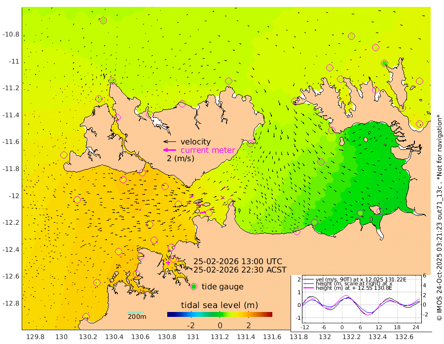 93cm/s 78T +4cm/s rms + 6cm/s 51T. Darwin_C1 52m 47cm/s 87T +4cm/s rms + 7cm/s -161T. Darwin_CW1 22m 53cm/s 75T +4cm/s rms + 8cm/s 61T. Darwin_CW2 34m 38cm/s 48T +3cm/s rms + 9cm/s 98T. Darwin_CW3 22m 78cm/s 89T +5cm/s rms + 7cm/s 88T. Darwin_C3 56m 58cm/s 63T +2cm/s rms + 9cm/s -126T. Darwin_CTbW 22m 28cm/s 86T +1cm/s rms + 1cm/s -47T. DARBGF 30m 24cm/s 111T +4cm/s rms + 3cm/s 80T. NRSDAR 19m 52cm Goodrich Bank 107cm Point Jenny 108cm Native Point 119cm Fish Reef 120cm Tapa Bay 86cm Point Fawcett (Offshore) 125cm Burge Point 117cm Munkunuwa 99cm Beagle A 136cm Parsons Bank 117cm Fenton Patches 122cm Hancox Shoal Area 117cm Nightcliff 143cm Darwin 138cm Charles Point Patches 92cm Glyde Point 43cm Chambers Bay 41cm Point Stuart 74cm Cape Hotham 39cm Christine Reef 36cm West Alligator Head 14cm East Field Island 60cm Two Hills Bay 51cm Camp Point 126cm Medina Inlet South 89cm South Barlow Point 67cm St. Asaph Bay 56cm Cape Van Dieman 67cm Snake Bay 57cm Cache Point 60cm Point Jahleel (Off) 75cm Cape Don 75cm Port Essington 75cm Smith Point - West 76cm NW Peacock Island 63cm North Of Jones Shoal 24cm Peacock Island 89cm Point David 82cm D'urville Point 87cm Copeland Island 87cm One Tree Point
