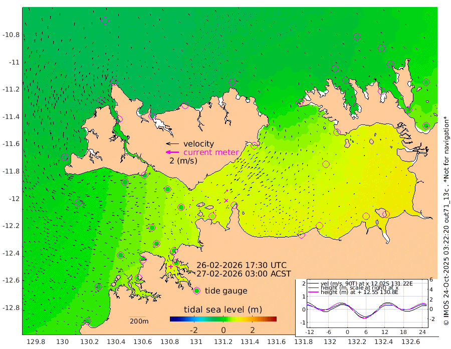 20cm/s 78T +4cm/s rms + 6cm/s 51T. Darwin_C1 52m 14cm/s 81T +4cm/s rms + 7cm/s -161T. Darwin_CW1 22m 8cm/s -103T +4cm/s rms + 8cm/s 61T. Darwin_CW2 34m 26cm/s 34T +3cm/s rms + 9cm/s 98T. Darwin_CW3 22m 8cm/s -103T +5cm/s rms + 7cm/s 88T. Darwin_C3 56m 10cm/s 61T +2cm/s rms + 9cm/s -126T. Darwin_CTbW 22m 27cm/s -87T +1cm/s rms + 1cm/s -47T. DARBGF 30m 27cm/s -55T +4cm/s rms + 3cm/s 80T. NRSDAR 19m -63cm Goodrich Bank -8cm Point Jenny -10cm Native Point -4cm Fish Reef -2cm Tapa Bay -53cm Point Fawcett (Offshore) 8cm Burge Point -19cm Munkunuwa -16cm Beagle A 13cm Parsons Bank 12cm Fenton Patches 22cm Hancox Shoal Area 14cm Nightcliff 16cm Darwin -3cm Charles Point Patches 47cm Glyde Point 82cm Chambers Bay 99cm Point Stuart 59cm Cape Hotham 73cm Christine Reef 110cm West Alligator Head 127cm East Field Island 64cm Two Hills Bay 59cm Camp Point -12cm Medina Inlet South -57cm South Barlow Point -66cm St. Asaph Bay -62cm Cape Van Dieman -61cm Snake Bay -54cm Cache Point -38cm Point Jahleel (Off) 0cm Cape Don -26cm Port Essington -26cm Smith Point - West -20cm NW Peacock Island -42cm North Of Jones Shoal -12cm Peacock Island 16cm Point David -16cm D'urville Point 22cm Copeland Island 6cm One Tree Point