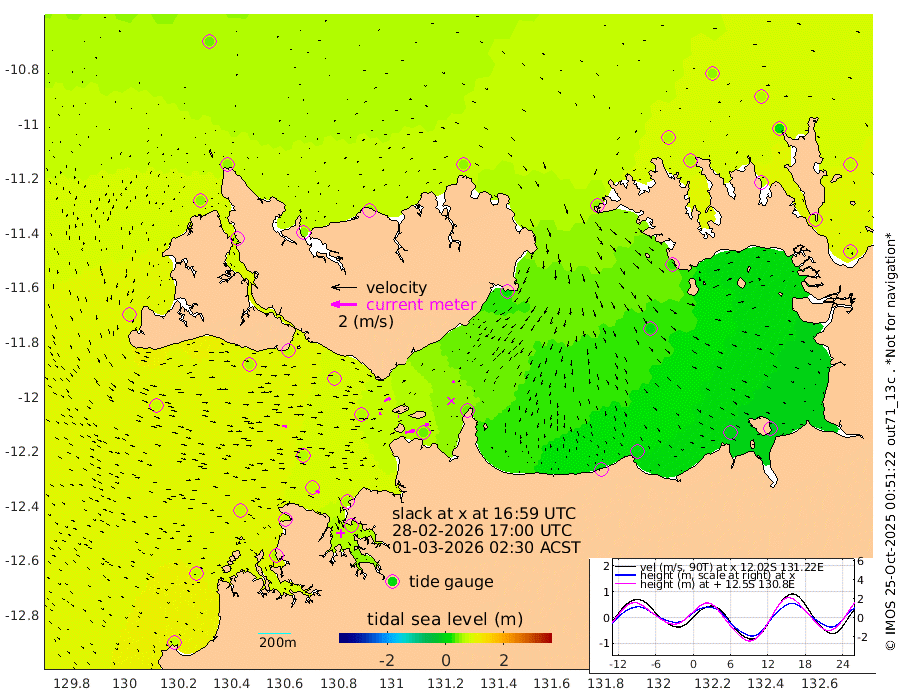 73cm/s 78T +4cm/s rms + 6cm/s 51T. Darwin_C1 52m 29cm/s 79T +4cm/s rms + 7cm/s -161T. Darwin_CW1 22m 15cm/s 80T +4cm/s rms + 8cm/s 61T. Darwin_CW2 34m 19cm/s 57T +3cm/s rms + 9cm/s 98T. Darwin_CW3 22m 5cm/s 87T +5cm/s rms + 7cm/s 88T. Darwin_C3 56m 53cm/s 63T +2cm/s rms + 9cm/s -126T. Darwin_CTbW 22m 33cm/s 94T +1cm/s rms + 1cm/s -47T. DARBGF 30m 32cm/s 123T +4cm/s rms + 3cm/s 80T. NRSDAR 19m 40cm Goodrich Bank 73cm Point Jenny 71cm Native Point 76cm Fish Reef 70cm Tapa Bay 70cm Point Fawcett (Offshore) 66cm Burge Point 62cm Munkunuwa 68cm Beagle A 71cm Parsons Bank 64cm Fenton Patches 62cm Hancox Shoal Area 61cm Nightcliff 66cm Darwin 72cm Charles Point Patches 41cm Glyde Point 9cm Chambers Bay 8cm Point Stuart 34cm Cape Hotham 7cm Christine Reef -1cm West Alligator Head -19cm East Field Island 27cm Two Hills Bay 17cm Camp Point 68cm Medina Inlet South 61cm South Barlow Point 52cm St. Asaph Bay 47cm Cape Van Dieman 49cm Snake Bay 50cm Cache Point 46cm Point Jahleel (Off) 55cm Cape Don 62cm Port Essington 63cm Smith Point - West 64cm NW Peacock Island 55cm North Of Jones Shoal 22cm Peacock Island 76cm Point David 69cm D'urville Point 75cm Copeland Island 73cm One Tree Point