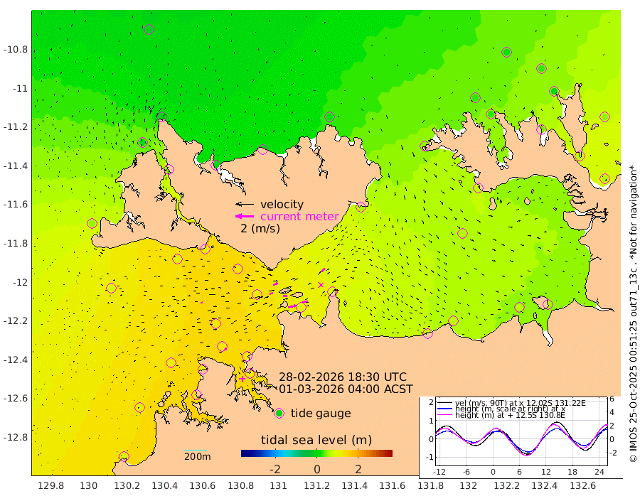 94cm/s 78T +4cm/s rms + 6cm/s 51T. Darwin_C1 52m 62cm/s 88T +4cm/s rms + 7cm/s -161T. Darwin_CW1 22m 36cm/s 74T +4cm/s rms + 8cm/s 61T. Darwin_CW2 34m 51cm/s 42T +3cm/s rms + 9cm/s 98T. Darwin_CW3 22m 44cm/s 89T +5cm/s rms + 7cm/s 88T. Darwin_C3 56m 52cm/s 64T +2cm/s rms + 9cm/s -126T. Darwin_CTbW 22m 22cm/s 89T +1cm/s rms + 1cm/s -47T. DARBGF 30m 22cm/s 116T +4cm/s rms + 3cm/s 80T. NRSDAR 19m -7cm Goodrich Bank 100cm Point Jenny 98cm Native Point 109cm Fish Reef 109cm Tapa Bay 48cm Point Fawcett (Offshore) 118cm Burge Point 95cm Munkunuwa 87cm Beagle A 119cm Parsons Bank 116cm Fenton Patches 115cm Hancox Shoal Area 115cm Nightcliff 123cm Darwin 113cm Charles Point Patches 95cm Glyde Point 72cm Chambers Bay 74cm Point Stuart 85cm Cape Hotham 63cm Christine Reef 74cm West Alligator Head 64cm East Field Island 69cm Two Hills Bay 64cm Camp Point 102cm Medina Inlet South 35cm South Barlow Point 16cm St. Asaph Bay -1cm Cape Van Dieman 1cm Snake Bay 5cm Cache Point 14cm Point Jahleel (Off) 48cm Cape Don 31cm Port Essington 31cm Smith Point - West 32cm NW Peacock Island 13cm North Of Jones Shoal 8cm Peacock Island 60cm Point David 40cm D'urville Point 64cm Copeland Island 53cm One Tree Point