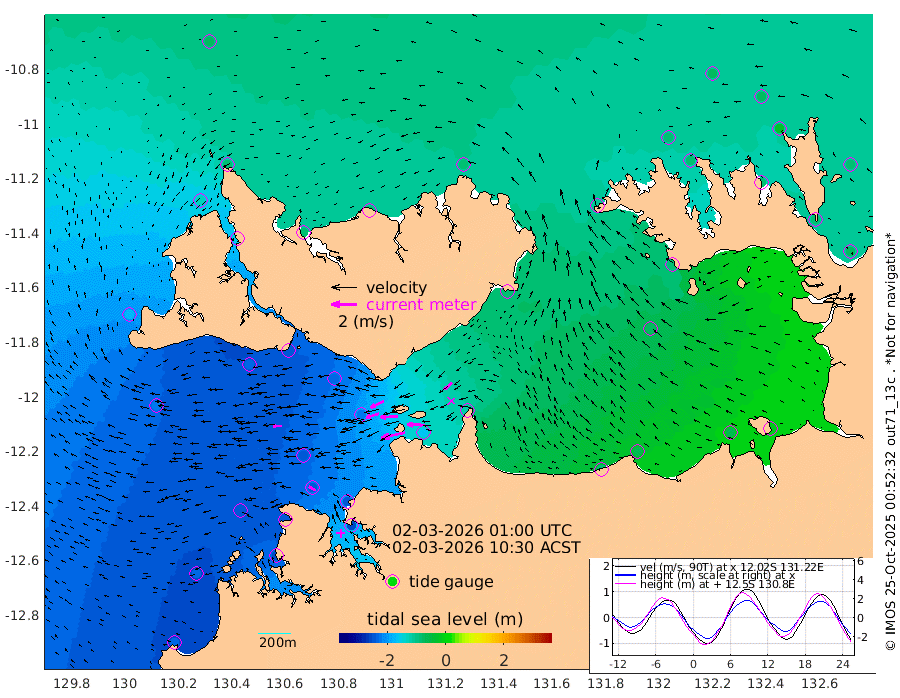 191cm/s -102T +4cm/s rms + 6cm/s 51T. Darwin_C1 52m 137cm/s -89T +4cm/s rms + 7cm/s -161T. Darwin_CW1 22m 104cm/s -107T +4cm/s rms + 8cm/s 61T. Darwin_CW2 34m 80cm/s -130T +3cm/s rms + 9cm/s 98T. Darwin_CW3 22m 134cm/s -91T +5cm/s rms + 7cm/s 88T. Darwin_C3 56m 114cm/s -115T +2cm/s rms + 9cm/s -126T. Darwin_CTbW 22m 72cm/s -92T +1cm/s rms + 1cm/s -47T. DARBGF 30m 63cm/s -62T +4cm/s rms + 3cm/s 80T. NRSDAR 19m -72cm Goodrich Bank -233cm Point Jenny -232cm Native Point -241cm Fish Reef -245cm Tapa Bay -176cm Point Fawcett (Offshore) -252cm Burge Point -235cm Munkunuwa -214cm Beagle A -235cm Parsons Bank -239cm Fenton Patches -219cm Hancox Shoal Area -240cm Nightcliff -250cm Darwin -247cm Charles Point Patches -159cm Glyde Point -80cm Chambers Bay -63cm Point Stuart -121cm Cape Hotham -73cm Christine Reef -57cm West Alligator Head -22cm East Field Island -86cm Two Hills Bay -87cm Camp Point -241cm Medina Inlet South -150cm South Barlow Point -125cm St. Asaph Bay -81cm Cape Van Dieman -85cm Snake Bay -82cm Cache Point -82cm Point Jahleel (Off) -104cm Cape Don -87cm Port Essington -86cm Smith Point - West -78cm NW Peacock Island -73cm North Of Jones Shoal -27cm Peacock Island -79cm Point David -84cm D'urville Point -76cm Copeland Island -82cm One Tree Point