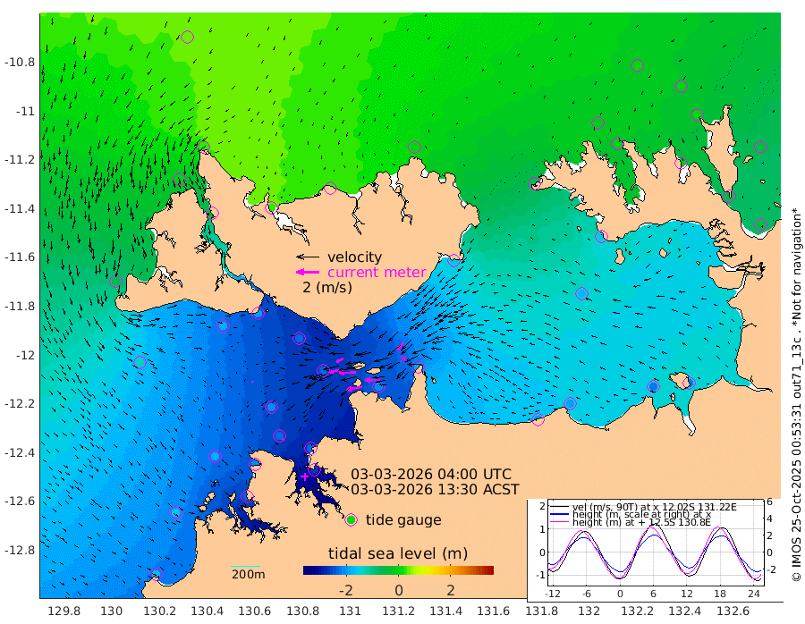 141cm/s -101T +4cm/s rms + 6cm/s 51T. Darwin_C1 52m 125cm/s -92T +4cm/s rms + 7cm/s -161T. Darwin_CW1 22m 84cm/s -106T +4cm/s rms + 8cm/s 61T. Darwin_CW2 34m 94cm/s -137T +3cm/s rms + 9cm/s 98T. Darwin_CW3 22m 148cm/s -91T +5cm/s rms + 7cm/s 88T. Darwin_C3 56m 67cm/s -116T +2cm/s rms + 9cm/s -126T. Darwin_CTbW 22m 11cm/s 150T +1cm/s rms + 1cm/s -47T. DARBGF 30m 18cm/s 154T +4cm/s rms + 3cm/s 80T. NRSDAR 19m 34cm Goodrich Bank -169cm Point Jenny -167cm Native Point -186cm Fish Reef -203cm Tapa Bay -60cm Point Fawcett (Offshore) -231cm Burge Point -185cm Munkunuwa -130cm Beagle A -226cm Parsons Bank -208cm Fenton Patches -228cm Hancox Shoal Area -228cm Nightcliff -260cm Darwin -226cm Charles Point Patches -208cm Glyde Point -200cm Chambers Bay -202cm Point Stuart -190cm Cape Hotham -175cm Christine Reef -218cm West Alligator Head -217cm East Field Island -164cm Two Hills Bay -168cm Camp Point -200cm Medina Inlet South -39cm South Barlow Point -6cm St. Asaph Bay 31cm Cape Van Dieman 23cm Snake Bay 23cm Cache Point -3cm Point Jahleel (Off) -73cm Cape Don -18cm Port Essington -10cm Smith Point - West -11cm NW Peacock Island 10cm North Of Jones Shoal 1cm Peacock Island -52cm Point David -16cm D'urville Point -55cm Copeland Island -47cm One Tree Point