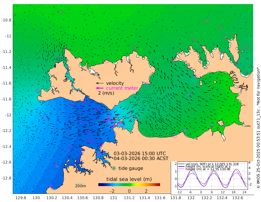 194cm/s -101T +4cm/s rms + 6cm/s 51T. Darwin_C1 52m 148cm/s -90T +4cm/s rms + 7cm/s -161T. Darwin_CW1 22m 107cm/s -107T +4cm/s rms + 8cm/s 61T. Darwin_CW2 34m 85cm/s -134T +3cm/s rms + 9cm/s 98T. Darwin_CW3 22m 146cm/s -91T +5cm/s rms + 7cm/s 88T. Darwin_C3 56m 110cm/s -115T +2cm/s rms + 9cm/s -126T. Darwin_CTbW 22m 54cm/s -93T +1cm/s rms + 1cm/s -47T. DARBGF 30m 48cm/s -67T +4cm/s rms + 3cm/s 80T. NRSDAR 19m 2cm Goodrich Bank -206cm Point Jenny -204cm Native Point -230cm Fish Reef -230cm Tapa Bay -110cm Point Fawcett (Offshore) -252cm Burge Point -228cm Munkunuwa -188cm Beagle A -246cm Parsons Bank -246cm Fenton Patches -232cm Hancox Shoal Area -249cm Nightcliff -263cm Darwin -240cm Charles Point Patches -173cm Glyde Point -104cm Chambers Bay -95cm Point Stuart -139cm Cape Hotham -93cm Christine Reef -97cm West Alligator Head -70cm East Field Island -97cm Two Hills Bay -93cm Camp Point -230cm Medina Inlet South -93cm South Barlow Point -57cm St. Asaph Bay -6cm Cape Van Dieman -11cm Snake Bay -9cm Cache Point -26cm Point Jahleel (Off) -69cm Cape Don -36cm Port Essington -39cm Smith Point - West -31cm NW Peacock Island -12cm North Of Jones Shoal -7cm Peacock Island -45cm Point David -41cm D'urville Point -49cm Copeland Island -43cm One Tree Point