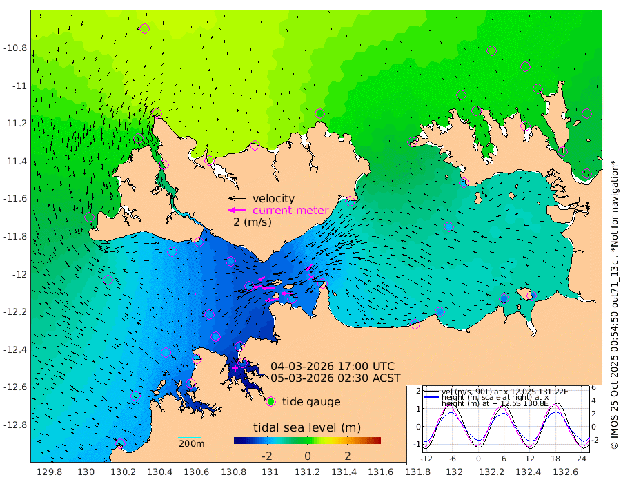 161cm/s -101T +4cm/s rms + 6cm/s 51T. Darwin_C1 52m 131cm/s -92T +4cm/s rms + 7cm/s -161T. Darwin_CW1 22m 83cm/s -106T +4cm/s rms + 8cm/s 61T. Darwin_CW2 34m 100cm/s -136T +3cm/s rms + 9cm/s 98T. Darwin_CW3 22m 144cm/s -91T +5cm/s rms + 7cm/s 88T. Darwin_C3 56m 79cm/s -116T +2cm/s rms + 9cm/s -126T. Darwin_CTbW 22m 12cm/s 138T +1cm/s rms + 1cm/s -47T. DARBGF 30m 21cm/s 153T +4cm/s rms + 3cm/s 80T. NRSDAR 19m 53cm Goodrich Bank -148cm Point Jenny -144cm Native Point -174cm Fish Reef -178cm Tapa Bay -35cm Point Fawcett (Offshore) -213cm Burge Point -167cm Munkunuwa -122cm Beagle A -212cm Parsons Bank -203cm Fenton Patches -212cm Hancox Shoal Area -214cm Nightcliff -242cm Darwin -201cm Charles Point Patches -199cm Glyde Point -192cm Chambers Bay -201cm Point Stuart -184cm Cape Hotham -174cm Christine Reef -221cm West Alligator Head -224cm East Field Island -161cm Two Hills Bay -153cm Camp Point -181cm Medina Inlet South -21cm South Barlow Point 14cm St. Asaph Bay 53cm Cape Van Dieman 45cm Snake Bay 42cm Cache Point 12cm Point Jahleel (Off) -57cm Cape Don 0cm Port Essington 1cm Smith Point - West 3cm NW Peacock Island 28cm North Of Jones Shoal 7cm Peacock Island -26cm Point David -3cm D'urville Point -33cm Copeland Island -24cm One Tree Point