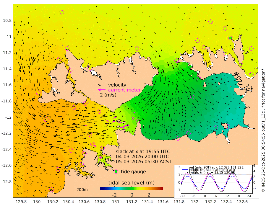 131cm/s 78T +4cm/s rms + 6cm/s 51T. Darwin_C1 52m 96cm/s 86T +4cm/s rms + 7cm/s -161T. Darwin_CW1 22m 75cm/s 75T +4cm/s rms + 8cm/s 61T. Darwin_CW2 34m 38cm/s 59T +3cm/s rms + 9cm/s 98T. Darwin_CW3 22m 88cm/s 87T +5cm/s rms + 7cm/s 88T. Darwin_C3 56m 77cm/s 64T +2cm/s rms + 9cm/s -126T. Darwin_CTbW 22m 86cm/s 91T +1cm/s rms + 1cm/s -47T. DARBGF 30m 87cm/s 120T +4cm/s rms + 3cm/s 80T. NRSDAR 19m 76cm Goodrich Bank 174cm Point Jenny 175cm Native Point 180cm Fish Reef 184cm Tapa Bay 157cm Point Fawcett (Offshore) 172cm Burge Point 190cm Munkunuwa 162cm Beagle A 171cm Parsons Bank 164cm Fenton Patches 151cm Hancox Shoal Area 170cm Nightcliff 171cm Darwin 182cm Charles Point Patches 66cm Glyde Point -36cm Chambers Bay -64cm Point Stuart 30cm Cape Hotham -39cm Christine Reef -84cm West Alligator Head -136cm East Field Island -10cm Two Hills Bay -7cm Camp Point 183cm Medina Inlet South 144cm South Barlow Point 125cm St. Asaph Bay 87cm Cape Van Dieman 92cm Snake Bay 80cm Cache Point 72cm Point Jahleel (Off) 66cm Cape Don 80cm Port Essington 81cm Smith Point - West 73cm NW Peacock Island 76cm North Of Jones Shoal 28cm Peacock Island 70cm Point David 81cm D'urville Point 67cm Copeland Island 71cm One Tree Point