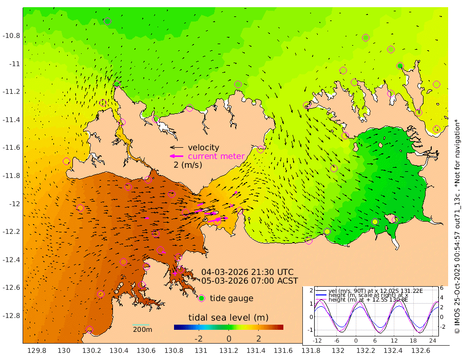 198cm/s 78T +4cm/s rms + 6cm/s 51T. Darwin_C1 52m 145cm/s 92T +4cm/s rms + 7cm/s -161T. Darwin_CW1 22m 123cm/s 73T +4cm/s rms + 8cm/s 61T. Darwin_CW2 34m 101cm/s 45T +3cm/s rms + 9cm/s 98T. Darwin_CW3 22m 182cm/s 89T +5cm/s rms + 7cm/s 88T. Darwin_C3 56m 95cm/s 66T +2cm/s rms + 9cm/s -126T. Darwin_CTbW 22m 60cm/s 85T +1cm/s rms + 1cm/s -47T. DARBGF 30m 55cm/s 113T +4cm/s rms + 3cm/s 80T. NRSDAR 19m 16cm Goodrich Bank 226cm Point Jenny 223cm Native Point 247cm Fish Reef 256cm Tapa Bay 139cm Point Fawcett (Offshore) 267cm Burge Point 253cm Munkunuwa 192cm Beagle A 269cm Parsons Bank 249cm Fenton Patches 256cm Hancox Shoal Area 269cm Nightcliff 290cm Darwin 271cm Charles Point Patches 183cm Glyde Point 107cm Chambers Bay 93cm Point Stuart 149cm Cape Hotham 89cm Christine Reef 91cm West Alligator Head 54cm East Field Island 104cm Two Hills Bay 100cm Camp Point 256cm Medina Inlet South 117cm South Barlow Point 80cm St. Asaph Bay 26cm Cape Van Dieman 35cm Snake Bay 28cm Cache Point 44cm Point Jahleel (Off) 89cm Cape Don 60cm Port Essington 59cm Smith Point - West 53cm NW Peacock Island 40cm North Of Jones Shoal 17cm Peacock Island 78cm Point David 63cm D'urville Point 80cm Copeland Island 76cm One Tree Point