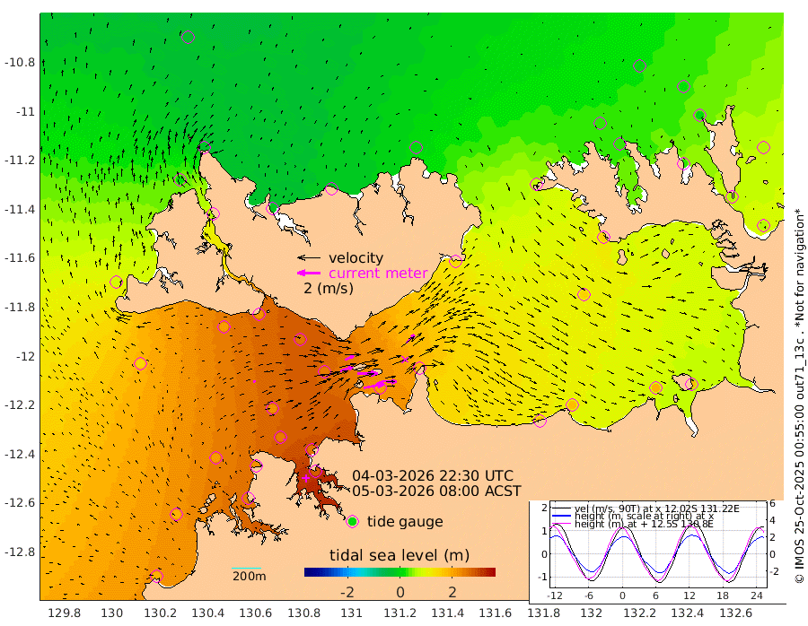 182cm/s 79T +4cm/s rms + 6cm/s 51T. Darwin_C1 52m 135cm/s 93T +4cm/s rms + 7cm/s -161T. Darwin_CW1 22m 116cm/s 71T +4cm/s rms + 8cm/s 61T. Darwin_CW2 34m 103cm/s 45T +3cm/s rms + 9cm/s 98T. Darwin_CW3 22m 179cm/s 89T +5cm/s rms + 7cm/s 88T. Darwin_C3 56m 86cm/s 65T +2cm/s rms + 9cm/s -126T. Darwin_CTbW 22m 20cm/s 66T +1cm/s rms + 1cm/s -47T. DARBGF 30m 9cm/s 47T +4cm/s rms + 3cm/s 80T. NRSDAR 19m -32cm Goodrich Bank 185cm Point Jenny 181cm Native Point 210cm Fish Reef 221cm Tapa Bay 79cm Point Fawcett (Offshore) 242cm Burge Point 211cm Munkunuwa 146cm Beagle A 249cm Parsons Bank 223cm Fenton Patches 245cm Hancox Shoal Area 248cm Nightcliff 277cm Darwin 243cm Charles Point Patches 204cm Glyde Point 173cm Chambers Bay 173cm Point Stuart 184cm Cape Hotham 150cm Christine Reef 185cm West Alligator Head 170cm East Field Island 151cm Two Hills Bay 143cm Camp Point 221cm Medina Inlet South 57cm South Barlow Point 20cm St. Asaph Bay -27cm Cape Van Dieman -18cm Snake Bay -19cm Cache Point 9cm Point Jahleel (Off) 76cm Cape Don 28cm Port Essington 24cm Smith Point - West 22cm NW Peacock Island 2cm North Of Jones Shoal 4cm Peacock Island 61cm Point David 31cm D'urville Point 67cm Copeland Island 58cm One Tree Point