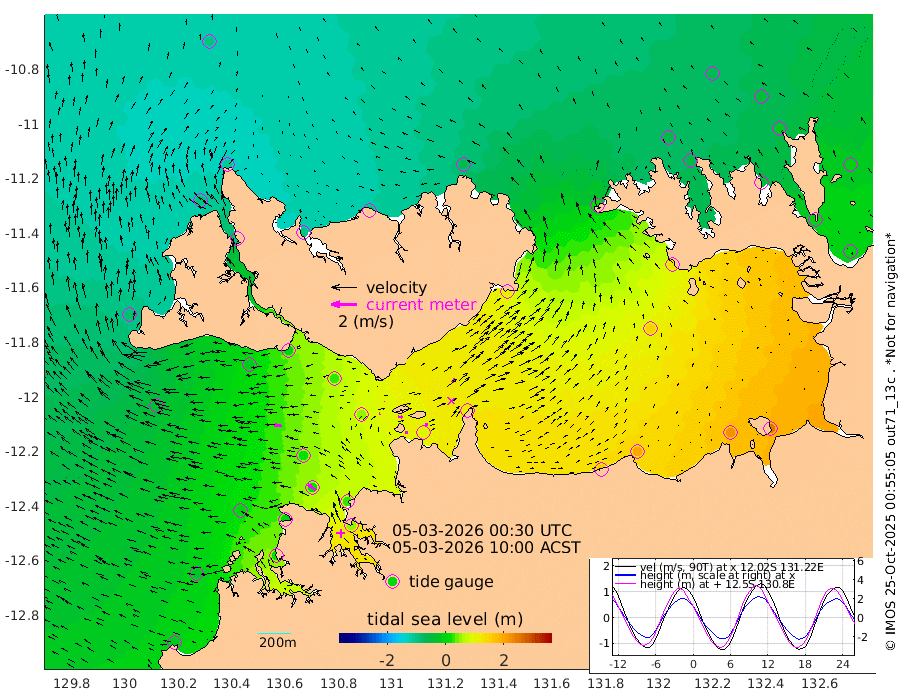 15cm/s 87T +4cm/s rms + 6cm/s 51T. Darwin_C1 52m 23cm/s 84T +4cm/s rms + 7cm/s -161T. Darwin_CW1 22m 5cm/s 69T +4cm/s rms + 8cm/s 61T. Darwin_CW2 34m 35cm/s 34T +3cm/s rms + 9cm/s 98T. Darwin_CW3 22m 34cm/s 93T +5cm/s rms + 7cm/s 88T. Darwin_C3 56m 1cm/s 152T +2cm/s rms + 9cm/s -126T. Darwin_CTbW 22m 64cm/s -84T +1cm/s rms + 1cm/s -47T. DARBGF 30m 77cm/s -53T +4cm/s rms + 3cm/s 80T. NRSDAR 19m -97cm Goodrich Bank -21cm Point Jenny -27cm Native Point -7cm Fish Reef -2cm Tapa Bay -83cm Point Fawcett (Offshore) 22cm Burge Point -17cm Munkunuwa -44cm Beagle A 33cm Parsons Bank 12cm Fenton Patches 50cm Hancox Shoal Area 32cm Nightcliff 52cm Darwin 18cm Charles Point Patches 93cm Glyde Point 167cm Chambers Bay 193cm Point Stuart 116cm Cape Hotham 150cm Christine Reef 220cm West Alligator Head 253cm East Field Island 128cm Two Hills Bay 115cm Camp Point -3cm Medina Inlet South -92cm South Barlow Point -101cm St. Asaph Bay -103cm Cape Van Dieman -100cm Snake Bay -88cm Cache Point -60cm Point Jahleel (Off) 1cm Cape Don -48cm Port Essington -51cm Smith Point - West -45cm NW Peacock Island -62cm North Of Jones Shoal -19cm Peacock Island -5cm Point David -44cm D'urville Point 3cm Copeland Island -9cm One Tree Point