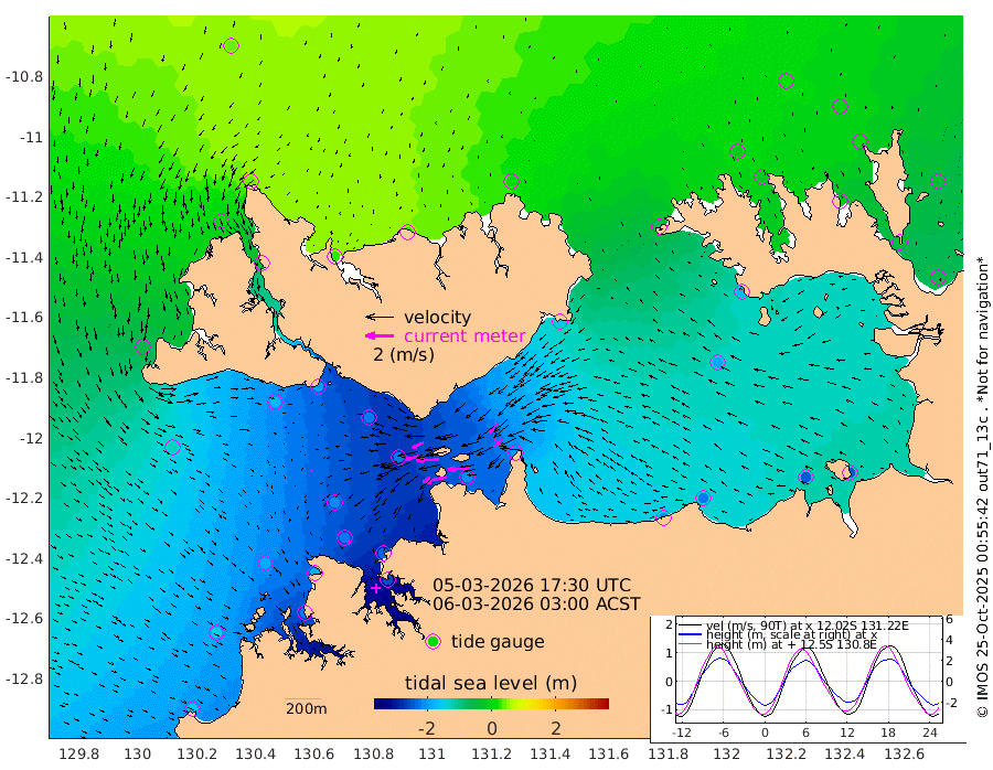 176cm/s -101T +4cm/s rms + 6cm/s 51T. Darwin_C1 52m 140cm/s -92T +4cm/s rms + 7cm/s -161T. Darwin_CW1 22m 87cm/s -106T +4cm/s rms + 8cm/s 61T. Darwin_CW2 34m 104cm/s -136T +3cm/s rms + 9cm/s 98T. Darwin_CW3 22m 157cm/s -91T +5cm/s rms + 7cm/s 88T. Darwin_C3 56m 88cm/s -116T +2cm/s rms + 9cm/s -126T. Darwin_CTbW 22m 12cm/s 145T +1cm/s rms + 1cm/s -47T. DARBGF 30m 22cm/s 154T +4cm/s rms + 3cm/s 80T. NRSDAR 19m 44cm Goodrich Bank -158cm Point Jenny -154cm Native Point -187cm Fish Reef -189cm Tapa Bay -49cm Point Fawcett (Offshore) -223cm Burge Point -176cm Munkunuwa -130cm Beagle A -225cm Parsons Bank -211cm Fenton Patches -224cm Hancox Shoal Area -227cm Nightcliff -258cm Darwin -217cm Charles Point Patches -212cm Glyde Point -206cm Chambers Bay -216cm Point Stuart -198cm Cape Hotham -186cm Christine Reef -236cm West Alligator Head -238cm East Field Island -177cm Two Hills Bay -165cm Camp Point -194cm Medina Inlet South -32cm South Barlow Point 4cm St. Asaph Bay 43cm Cape Van Dieman 33cm Snake Bay 31cm Cache Point 1cm Point Jahleel (Off) -72cm Cape Don -14cm Port Essington -12cm Smith Point - West -10cm NW Peacock Island 12cm North Of Jones Shoal 1cm Peacock Island -41cm Point David -17cm D'urville Point -48cm Copeland Island -42cm One Tree Point