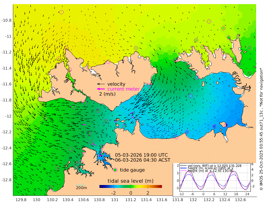 30cm/s -103T +4cm/s rms + 6cm/s 51T. Darwin_C1 52m 26cm/s -86T +4cm/s rms + 7cm/s -161T. Darwin_CW1 22m 7cm/s -105T +4cm/s rms + 8cm/s 61T. Darwin_CW2 34m 64cm/s -143T +3cm/s rms + 9cm/s 98T. Darwin_CW3 22m 48cm/s -88T +5cm/s rms + 7cm/s 88T. Darwin_C3 56m 3cm/s 36T +2cm/s rms + 9cm/s -126T. Darwin_CTbW 22m 68cm/s 97T +1cm/s rms + 1cm/s -47T. DARBGF 30m 75cm/s 128T +4cm/s rms + 3cm/s 80T. NRSDAR 19m 86cm Goodrich Bank 13cm Point Jenny 17cm Native Point -4cm Fish Reef -2cm Tapa Bay 76cm Point Fawcett (Offshore) -33cm Burge Point 14cm Munkunuwa 26cm Beagle A -36cm Parsons Bank -28cm Fenton Patches -50cm Hancox Shoal Area -37cm Nightcliff -59cm Darwin -23cm Charles Point Patches -104cm Glyde Point -176cm Chambers Bay -205cm Point Stuart -123cm Cape Hotham -162cm Christine Reef -234cm West Alligator Head -272cm East Field Island -138cm Two Hills Bay -125cm Camp Point -5cm Medina Inlet South 81cm South Barlow Point 92cm St. Asaph Bay 93cm Cape Van Dieman 89cm Snake Bay 78cm Cache Point 51cm Point Jahleel (Off) -8cm Cape Don 43cm Port Essington 46cm Smith Point - West 41cm NW Peacock Island 59cm North Of Jones Shoal 19cm Peacock Island 13cm Point David 42cm D'urville Point 6cm Copeland Island 14cm One Tree Point