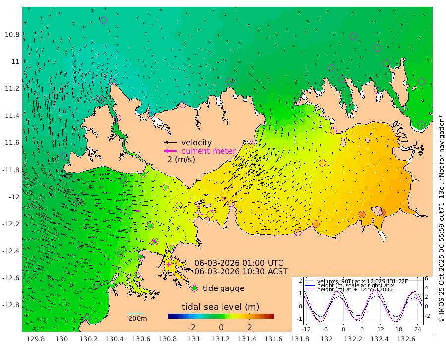 37cm/s 82T +4cm/s rms + 6cm/s 51T. Darwin_C1 52m 35cm/s 87T +4cm/s rms + 7cm/s -161T. Darwin_CW1 22m 13cm/s 70T +4cm/s rms + 8cm/s 61T. Darwin_CW2 34m 41cm/s 40T +3cm/s rms + 9cm/s 98T. Darwin_CW3 22m 46cm/s 92T +5cm/s rms + 7cm/s 88T. Darwin_C3 56m 13cm/s 70T +2cm/s rms + 9cm/s -126T. Darwin_CTbW 22m 59cm/s -83T +1cm/s rms + 1cm/s -47T. DARBGF 30m 74cm/s -53T +4cm/s rms + 3cm/s 80T. NRSDAR 19m -88cm Goodrich Bank -9cm Point Jenny -15cm Native Point 6cm Fish Reef 10cm Tapa Bay -66cm Point Fawcett (Offshore) 31cm Burge Point -6cm Munkunuwa -34cm Beagle A 41cm Parsons Bank 19cm Fenton Patches 58cm Hancox Shoal Area 42cm Nightcliff 62cm Darwin 28cm Charles Point Patches 100cm Glyde Point 173cm Chambers Bay 200cm Point Stuart 124cm Cape Hotham 155cm Christine Reef 228cm West Alligator Head 259cm East Field Island 137cm Two Hills Bay 120cm Camp Point 10cm Medina Inlet South -80cm South Barlow Point -89cm St. Asaph Bay -93cm Cape Van Dieman -90cm Snake Bay -77cm Cache Point -50cm Point Jahleel (Off) 10cm Cape Don -40cm Port Essington -43cm Smith Point - West -38cm NW Peacock Island -52cm North Of Jones Shoal -16cm Peacock Island -1cm Point David -38cm D'urville Point 7cm Copeland Island -3cm One Tree Point