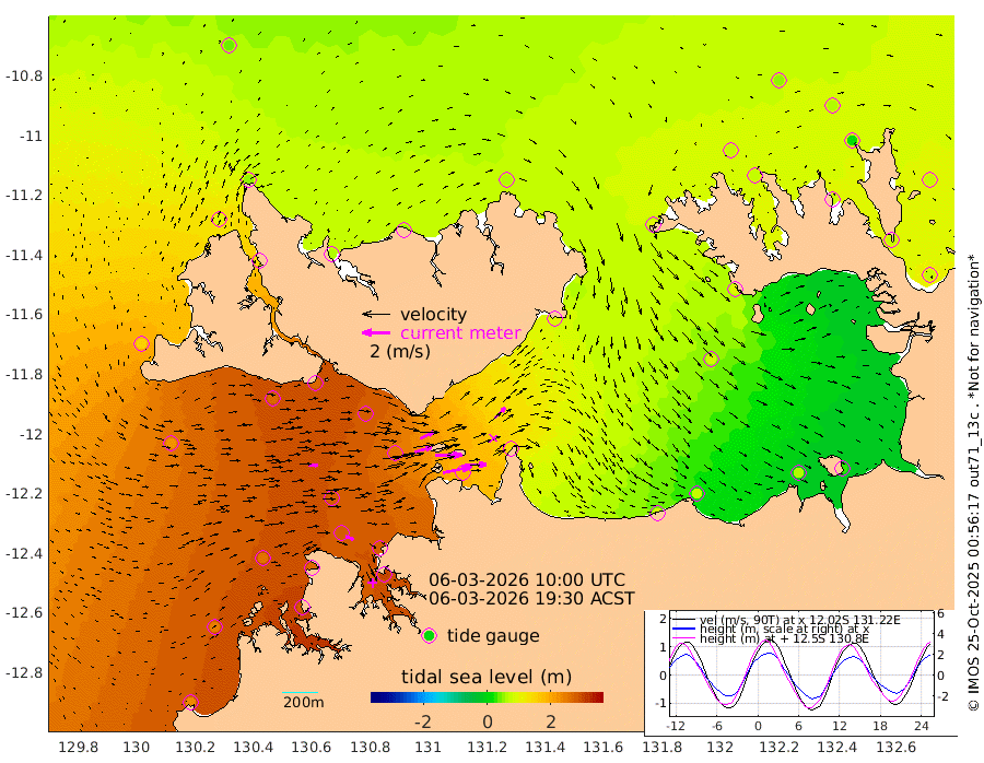 208cm/s 78T +4cm/s rms + 6cm/s 51T. Darwin_C1 52m 159cm/s 91T +4cm/s rms + 7cm/s -161T. Darwin_CW1 22m 129cm/s 74T +4cm/s rms + 8cm/s 61T. Darwin_CW2 34m 107cm/s 46T +3cm/s rms + 9cm/s 98T. Darwin_CW3 22m 193cm/s 89T +5cm/s rms + 7cm/s 88T. Darwin_C3 56m 105cm/s 65T +2cm/s rms + 9cm/s -126T. Darwin_CTbW 22m 65cm/s 86T +1cm/s rms + 1cm/s -47T. DARBGF 30m 63cm/s 112T +4cm/s rms + 3cm/s 80T. NRSDAR 19m 41cm Goodrich Bank 236cm Point Jenny 236cm Native Point 258cm Fish Reef 263cm Tapa Bay 150cm Point Fawcett (Offshore) 280cm Burge Point 262cm Munkunuwa 218cm Beagle A 276cm Parsons Bank 271cm Fenton Patches 256cm Hancox Shoal Area 277cm Nightcliff 299cm Darwin 281cm Charles Point Patches 184cm Glyde Point 90cm Chambers Bay 70cm Point Stuart 136cm Cape Hotham 79cm Christine Reef 66cm West Alligator Head 28cm East Field Island 91cm Two Hills Bay 93cm Camp Point 269cm Medina Inlet South 142cm South Barlow Point 100cm St. Asaph Bay 48cm Cape Van Dieman 61cm Snake Bay 46cm Cache Point 59cm Point Jahleel (Off) 94cm Cape Don 70cm Port Essington 71cm Smith Point - West 62cm NW Peacock Island 49cm North Of Jones Shoal 19cm Peacock Island 69cm Point David 72cm D'urville Point 69cm Copeland Island 71cm One Tree Point