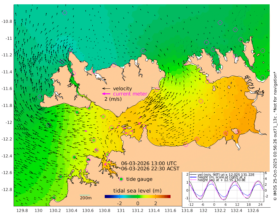 50cm/s 80T +4cm/s rms + 6cm/s 51T. Darwin_C1 52m 40cm/s 90T +4cm/s rms + 7cm/s -161T. Darwin_CW1 22m 29cm/s 69T +4cm/s rms + 8cm/s 61T. Darwin_CW2 34m 52cm/s 44T +3cm/s rms + 9cm/s 98T. Darwin_CW3 22m 69cm/s 92T +5cm/s rms + 7cm/s 88T. Darwin_C3 56m 19cm/s 65T +2cm/s rms + 9cm/s -126T. Darwin_CTbW 22m 60cm/s -82T +1cm/s rms + 1cm/s -47T. DARBGF 30m 76cm/s -52T +4cm/s rms + 3cm/s 80T. NRSDAR 19m -94cm Goodrich Bank -2cm Point Jenny -5cm Native Point 16cm Fish Reef 19cm Tapa Bay -74cm Point Fawcett (Offshore) 45cm Burge Point 8cm Munkunuwa -26cm Beagle A 56cm Parsons Bank 36cm Fenton Patches 65cm Hancox Shoal Area 48cm Nightcliff 80cm Darwin 41cm Charles Point Patches 111cm Glyde Point 173cm Chambers Bay 200cm Point Stuart 123cm Cape Hotham 152cm Christine Reef 228cm West Alligator Head 258cm East Field Island 135cm Two Hills Bay 123cm Camp Point 23cm Medina Inlet South -79cm South Barlow Point -97cm St. Asaph Bay -99cm Cape Van Dieman -93cm Snake Bay -88cm Cache Point -58cm Point Jahleel (Off) 7cm Cape Don -46cm Port Essington -52cm Smith Point - West -47cm NW Peacock Island -69cm North Of Jones Shoal -22cm Peacock Island -10cm Point David -45cm D'urville Point -4cm Copeland Island -13cm One Tree Point