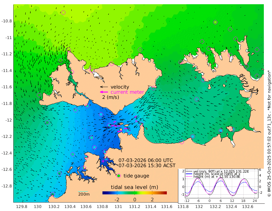 137cm/s -101T +4cm/s rms + 6cm/s 51T. Darwin_C1 52m 108cm/s -91T +4cm/s rms + 7cm/s -161T. Darwin_CW1 22m 82cm/s -106T +4cm/s rms + 8cm/s 61T. Darwin_CW2 34m 74cm/s -134T +3cm/s rms + 9cm/s 98T. Darwin_CW3 22m 147cm/s -91T +5cm/s rms + 7cm/s 88T. Darwin_C3 56m 69cm/s -116T +2cm/s rms + 9cm/s -126T. Darwin_CTbW 22m 8cm/s 159T +1cm/s rms + 1cm/s -47T. DARBGF 30m 16cm/s 166T +4cm/s rms + 3cm/s 80T. NRSDAR 19m 60cm Goodrich Bank -103cm Point Jenny -101cm Native Point -123cm Fish Reef -137cm Tapa Bay -15cm Point Fawcett (Offshore) -148cm Burge Point -133cm Munkunuwa -63cm Beagle A -166cm Parsons Bank -132cm Fenton Patches -165cm Hancox Shoal Area -158cm Nightcliff -189cm Darwin -155cm Charles Point Patches -147cm Glyde Point -142cm Chambers Bay -148cm Point Stuart -133cm Cape Hotham -117cm Christine Reef -164cm West Alligator Head -157cm East Field Island -118cm Two Hills Bay -107cm Camp Point -139cm Medina Inlet South -3cm South Barlow Point 28cm St. Asaph Bay 58cm Cape Van Dieman 48cm Snake Bay 53cm Cache Point 26cm Point Jahleel (Off) -36cm Cape Don 9cm Port Essington 13cm Smith Point - West 14cm NW Peacock Island 34cm North Of Jones Shoal 9cm Peacock Island -23cm Point David 7cm D'urville Point -28cm Copeland Island -18cm One Tree Point