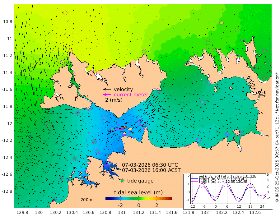 107cm/s -100T +4cm/s rms + 6cm/s 51T. Darwin_C1 52m 83cm/s -92T +4cm/s rms + 7cm/s -161T. Darwin_CW1 22m 58cm/s -106T +4cm/s rms + 8cm/s 61T. Darwin_CW2 34m 70cm/s -135T +3cm/s rms + 9cm/s 98T. Darwin_CW3 22m 119cm/s -91T +5cm/s rms + 7cm/s 88T. Darwin_C3 56m 48cm/s -116T +2cm/s rms + 9cm/s -126T. Darwin_CTbW 22m 26cm/s 108T +1cm/s rms + 1cm/s -47T. DARBGF 30m 35cm/s 139T +4cm/s rms + 3cm/s 80T. NRSDAR 19m 79cm Goodrich Bank -59cm Point Jenny -56cm Native Point -78cm Fish Reef -90cm Tapa Bay 21cm Point Fawcett (Offshore) -101cm Burge Point -84cm Munkunuwa -20cm Beagle A -120cm Parsons Bank -86cm Fenton Patches -125cm Hancox Shoal Area -112cm Nightcliff -143cm Darwin -107cm Charles Point Patches -128cm Glyde Point -150cm Chambers Bay -165cm Point Stuart -126cm Cape Hotham -125cm Christine Reef -185cm West Alligator Head -191cm East Field Island -121cm Two Hills Bay -107cm Camp Point -91cm Medina Inlet South 34cm South Barlow Point 58cm St. Asaph Bay 79cm Cape Van Dieman 71cm Snake Bay 72cm Cache Point 43cm Point Jahleel (Off) -21cm Cape Don 27cm Port Essington 31cm Smith Point - West 30cm NW Peacock Island 50cm North Of Jones Shoal 15cm Peacock Island -9cm Point David 25cm D'urville Point -15cm Copeland Island -4cm One Tree Point
