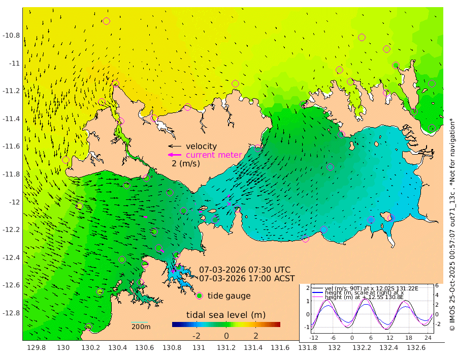22cm/s -101T +4cm/s rms + 6cm/s 51T. Darwin_C1 52m 15cm/s -88T +4cm/s rms + 7cm/s -161T. Darwin_CW1 22m 7cm/s -106T +4cm/s rms + 8cm/s 61T. Darwin_CW2 34m 47cm/s -139T +3cm/s rms + 9cm/s 98T. Darwin_CW3 22m 46cm/s -89T +5cm/s rms + 7cm/s 88T. Darwin_C3 56m 7cm/s 60T +2cm/s rms + 9cm/s -126T. Darwin_CTbW 22m 60cm/s 97T +1cm/s rms + 1cm/s -47T. DARBGF 30m 67cm/s 129T +4cm/s rms + 3cm/s 80T. NRSDAR 19m 103cm Goodrich Bank 42cm Point Jenny 45cm Native Point 29cm Fish Reef 23cm Tapa Bay 91cm Point Fawcett (Offshore) 14cm Burge Point 30cm Munkunuwa 71cm Beagle A -5cm Parsons Bank 24cm Fenton Patches -19cm Hancox Shoal Area 3cm Nightcliff -20cm Darwin 11cm Charles Point Patches -62cm Glyde Point -134cm Chambers Bay -161cm Point Stuart -83cm Cape Hotham -112cm Christine Reef -186cm West Alligator Head -213cm East Field Island -100cm Two Hills Bay -83cm Camp Point 24cm Medina Inlet South 102cm South Barlow Point 109cm St. Asaph Bay 107cm Cape Van Dieman 105cm Snake Bay 97cm Cache Point 71cm Point Jahleel (Off) 16cm Cape Don 60cm Port Essington 65cm Smith Point - West 60cm NW Peacock Island 76cm North Of Jones Shoal 25cm Peacock Island 23cm Point David 59cm D'urville Point 16cm Copeland Island 27cm One Tree Point