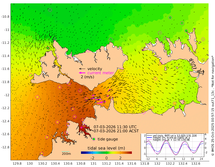 183cm/s 78T +4cm/s rms + 6cm/s 51T. Darwin_C1 52m 138cm/s 92T +4cm/s rms + 7cm/s -161T. Darwin_CW1 22m 116cm/s 73T +4cm/s rms + 8cm/s 61T. Darwin_CW2 34m 108cm/s 44T +3cm/s rms + 9cm/s 98T. Darwin_CW3 22m 192cm/s 89T +5cm/s rms + 7cm/s 88T. Darwin_C3 56m 87cm/s 66T +2cm/s rms + 9cm/s -126T. Darwin_CTbW 22m 22cm/s 68T +1cm/s rms + 1cm/s -47T. DARBGF 30m 15cm/s 74T +4cm/s rms + 3cm/s 80T. NRSDAR 19m -13cm Goodrich Bank 175cm Point Jenny 173cm Native Point 201cm Fish Reef 206cm Tapa Bay 79cm Point Fawcett (Offshore) 230cm Burge Point 200cm Munkunuwa 147cm Beagle A 237cm Parsons Bank 217cm Fenton Patches 228cm Hancox Shoal Area 235cm Nightcliff 266cm Darwin 234cm Charles Point Patches 193cm Glyde Point 153cm Chambers Bay 150cm Point Stuart 164cm Cape Hotham 134cm Christine Reef 159cm West Alligator Head 144cm East Field Island 137cm Two Hills Bay 130cm Camp Point 215cm Medina Inlet South 71cm South Barlow Point 30cm St. Asaph Bay -10cm Cape Van Dieman 5cm Snake Bay -5cm Cache Point 19cm Point Jahleel (Off) 79cm Cape Don 37cm Port Essington 35cm Smith Point - West 32cm NW Peacock Island 12cm North Of Jones Shoal 7cm Peacock Island 59cm Point David 41cm D'urville Point 62cm Copeland Island 60cm One Tree Point
