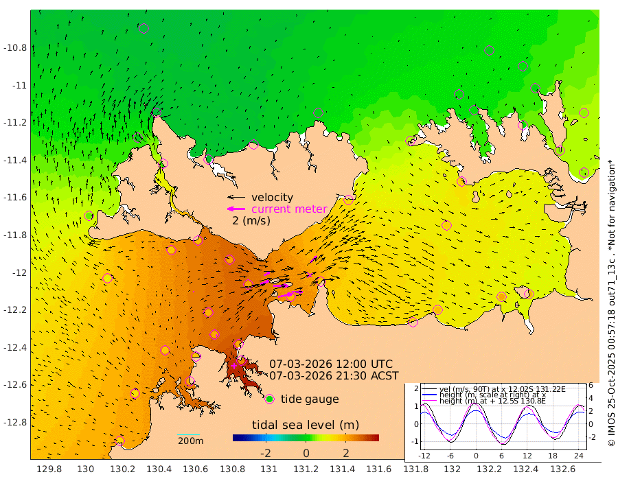 163cm/s 79T +4cm/s rms + 6cm/s 51T. Darwin_C1 52m 121cm/s 93T +4cm/s rms + 7cm/s -161T. Darwin_CW1 22m 103cm/s 72T +4cm/s rms + 8cm/s 61T. Darwin_CW2 34m 100cm/s 45T +3cm/s rms + 9cm/s 98T. Darwin_CW3 22m 174cm/s 89T +5cm/s rms + 7cm/s 88T. Darwin_C3 56m 76cm/s 65T +2cm/s rms + 9cm/s -126T. Darwin_CTbW 22m 9cm/s -8T +1cm/s rms + 1cm/s -47T. DARBGF 30m 19cm/s -26T +4cm/s rms + 3cm/s 80T. NRSDAR 19m -38cm Goodrich Bank 137cm Point Jenny 134cm Native Point 163cm Fish Reef 168cm Tapa Bay 41cm Point Fawcett (Offshore) 193cm Burge Point 159cm Munkunuwa 107cm Beagle A 203cm Parsons Bank 180cm Fenton Patches 198cm Hancox Shoal Area 199cm Nightcliff 233cm Darwin 196cm Charles Point Patches 185cm Glyde Point 171cm Chambers Bay 177cm Point Stuart 166cm Cape Hotham 150cm Christine Reef 193cm West Alligator Head 189cm East Field Island 149cm Two Hills Bay 138cm Camp Point 176cm Medina Inlet South 33cm South Barlow Point -4cm St. Asaph Bay -37cm Cape Van Dieman -23cm Snake Bay -29cm Cache Point -1cm Point Jahleel (Off) 66cm Cape Don 18cm Port Essington 14cm Smith Point - West 14cm NW Peacock Island -8cm North Of Jones Shoal 0cm Peacock Island 46cm Point David 21cm D'urville Point 51cm Copeland Island 46cm One Tree Point