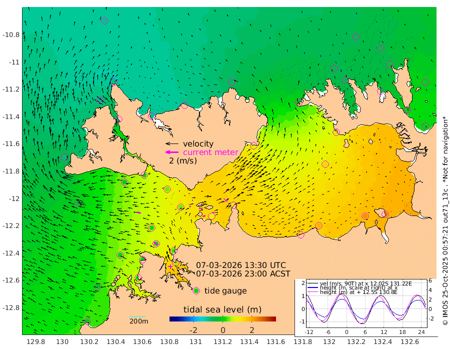 41cm/s 81T +4cm/s rms + 6cm/s 51T. Darwin_C1 52m 32cm/s 90T +4cm/s rms + 7cm/s -161T. Darwin_CW1 22m 20cm/s 67T +4cm/s rms + 8cm/s 61T. Darwin_CW2 34m 46cm/s 45T +3cm/s rms + 9cm/s 98T. Darwin_CW3 22m 56cm/s 92T +5cm/s rms + 7cm/s 88T. Darwin_C3 56m 15cm/s 65T +2cm/s rms + 9cm/s -126T. Darwin_CTbW 22m 61cm/s -83T +1cm/s rms + 1cm/s -47T. DARBGF 30m 77cm/s -53T +4cm/s rms + 3cm/s 80T. NRSDAR 19m -94cm Goodrich Bank -21cm Point Jenny -24cm Native Point -2cm Fish Reef -3cm Tapa Bay -81cm Point Fawcett (Offshore) 21cm Burge Point -14cm Munkunuwa -42cm Beagle A 34cm Parsons Bank 13cm Fenton Patches 43cm Hancox Shoal Area 25cm Nightcliff 55cm Darwin 19cm Charles Point Patches 94cm Glyde Point 160cm Chambers Bay 188cm Point Stuart 109cm Cape Hotham 139cm Christine Reef 215cm West Alligator Head 246cm East Field Island 126cm Two Hills Bay 110cm Camp Point 2cm Medina Inlet South -85cm South Barlow Point -101cm St. Asaph Bay -99cm Cape Van Dieman -93cm Snake Bay -87cm Cache Point -59cm Point Jahleel (Off) 4cm Cape Don -44cm Port Essington -49cm Smith Point - West -43cm NW Peacock Island -64cm North Of Jones Shoal -20cm Peacock Island -7cm Point David -42cm D'urville Point 0cm Copeland Island -9cm One Tree Point