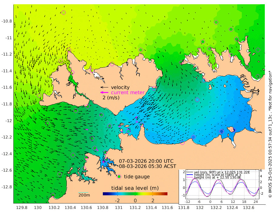 46cm/s -101T +4cm/s rms + 6cm/s 51T. Darwin_C1 52m 39cm/s -91T +4cm/s rms + 7cm/s -161T. Darwin_CW1 22m 4cm/s -83T +4cm/s rms + 8cm/s 61T. Darwin_CW2 34m 65cm/s -141T +3cm/s rms + 9cm/s 98T. Darwin_CW3 22m 49cm/s -87T +5cm/s rms + 7cm/s 88T. Darwin_C3 56m 9cm/s -110T +2cm/s rms + 9cm/s -126T. Darwin_CTbW 22m 61cm/s 97T +1cm/s rms + 1cm/s -47T. DARBGF 30m 70cm/s 128T +4cm/s rms + 3cm/s 80T. NRSDAR 19m 65cm Goodrich Bank 3cm Point Jenny 9cm Native Point -16cm Fish Reef -8cm Tapa Bay 50cm Point Fawcett (Offshore) -34cm Burge Point 11cm Munkunuwa 17cm Beagle A -39cm Parsons Bank -28cm Fenton Patches -52cm Hancox Shoal Area -41cm Nightcliff -62cm Darwin -31cm Charles Point Patches -109cm Glyde Point -181cm Chambers Bay -211cm Point Stuart -131cm Cape Hotham -163cm Christine Reef -238cm West Alligator Head -273cm East Field Island -150cm Two Hills Bay -130cm Camp Point -14cm Medina Inlet South 62cm South Barlow Point 71cm St. Asaph Bay 71cm Cape Van Dieman 65cm Snake Bay 53cm Cache Point 30cm Point Jahleel (Off) -28cm Cape Don 20cm Port Essington 24cm Smith Point - West 19cm NW Peacock Island 31cm North Of Jones Shoal 9cm Peacock Island -10cm Point David 19cm D'urville Point -16cm Copeland Island -13cm One Tree Point