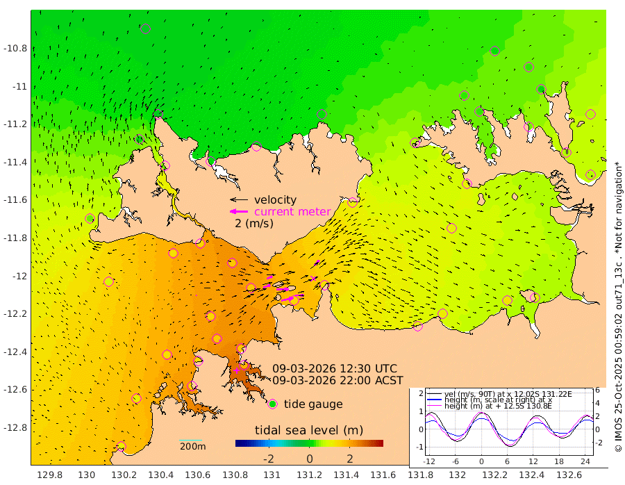 136cm/s 78T +4cm/s rms + 6cm/s 51T. Darwin_C1 52m 98cm/s 91T +4cm/s rms + 7cm/s -161T. Darwin_CW1 22m 81cm/s 74T +4cm/s rms + 8cm/s 61T. Darwin_CW2 34m 84cm/s 43T +3cm/s rms + 9cm/s 98T. Darwin_CW3 22m 141cm/s 89T +5cm/s rms + 7cm/s 88T. Darwin_C3 56m 67cm/s 66T +2cm/s rms + 9cm/s -126T. Darwin_CTbW 22m 9cm/s 44T +1cm/s rms + 1cm/s -47T. DARBGF 30m 9cm/s 21T +4cm/s rms + 3cm/s 80T. NRSDAR 19m -16cm Goodrich Bank 109cm Point Jenny 108cm Native Point 127cm Fish Reef 134cm Tapa Bay 43cm Point Fawcett (Offshore) 150cm Burge Point 126cm Munkunuwa 85cm Beagle A 164cm Parsons Bank 138cm Fenton Patches 160cm Hancox Shoal Area 164cm Nightcliff 185cm Darwin 158cm Charles Point Patches 140cm Glyde Point 123cm Chambers Bay 123cm Point Stuart 126cm Cape Hotham 108cm Christine Reef 131cm West Alligator Head 123cm East Field Island 111cm Two Hills Bay 103cm Camp Point 142cm Medina Inlet South 42cm South Barlow Point 10cm St. Asaph Bay -14cm Cape Van Dieman 2cm Snake Bay -9cm Cache Point 12cm Point Jahleel (Off) 62cm Cape Don 30cm Port Essington 28cm Smith Point - West 30cm NW Peacock Island 15cm North Of Jones Shoal 8cm Peacock Island 60cm Point David 37cm D'urville Point 62cm Copeland Island 60cm One Tree Point