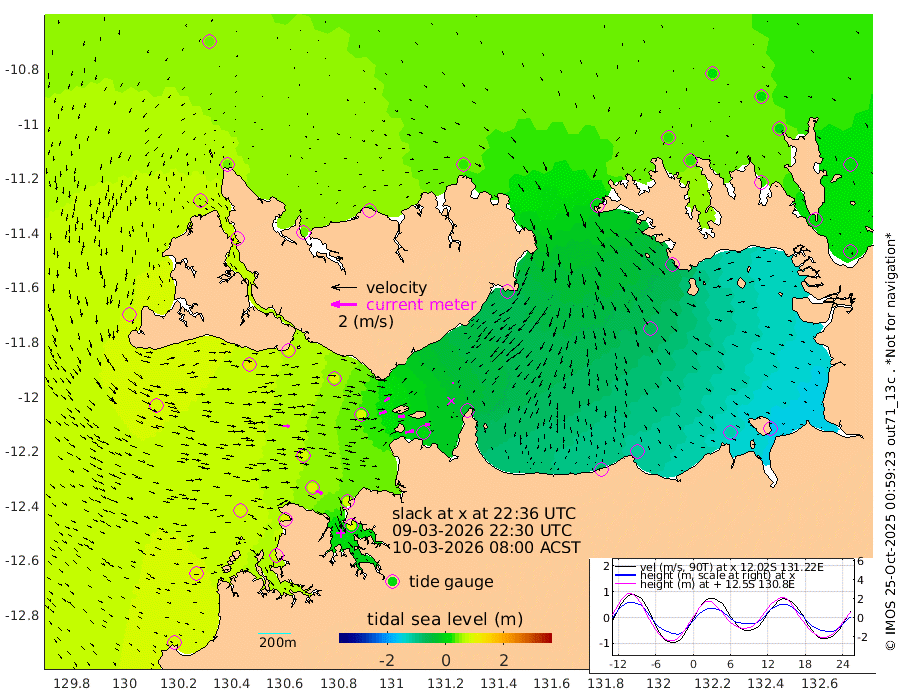 68cm/s 78T +4cm/s rms + 6cm/s 51T. Darwin_C1 52m 41cm/s 86T +4cm/s rms + 7cm/s -161T. Darwin_CW1 22m 57cm/s 73T +4cm/s rms + 8cm/s 61T. Darwin_CW2 34m 10cm/s 119T +3cm/s rms + 9cm/s 98T. Darwin_CW3 22m 56cm/s 85T +5cm/s rms + 7cm/s 88T. Darwin_C3 56m 49cm/s 63T +2cm/s rms + 9cm/s -126T. Darwin_CTbW 22m 55cm/s 91T +1cm/s rms + 1cm/s -47T. DARBGF 30m 56cm/s 119T +4cm/s rms + 3cm/s 80T. NRSDAR 19m 38cm Goodrich Bank 89cm Point Jenny 94cm Native Point 82cm Fish Reef 99cm Tapa Bay 70cm Point Fawcett (Offshore) 87cm Burge Point 115cm Munkunuwa 81cm Beagle A 92cm Parsons Bank 85cm Fenton Patches 79cm Hancox Shoal Area 89cm Nightcliff 85cm Darwin 91cm Charles Point Patches 4cm Glyde Point -74cm Chambers Bay -103cm Point Stuart -29cm Cape Hotham -63cm Christine Reef -119cm West Alligator Head -158cm East Field Island -59cm Two Hills Bay -47cm Camp Point 96cm Medina Inlet South 80cm South Barlow Point 66cm St. Asaph Bay 43cm Cape Van Dieman 44cm Snake Bay 30cm Cache Point 25cm Point Jahleel (Off) 8cm Cape Don 24cm Port Essington 29cm Smith Point - West 22cm NW Peacock Island 20cm North Of Jones Shoal 6cm Peacock Island 9cm Point David 26cm D'urville Point 6cm Copeland Island 5cm One Tree Point