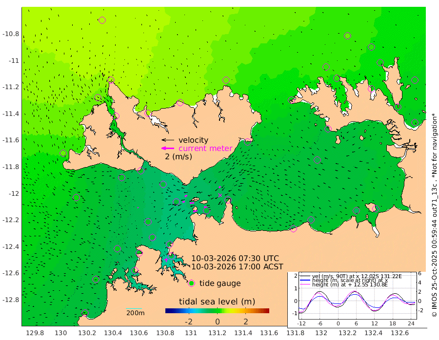 70cm/s -101T +4cm/s rms + 6cm/s 51T. Darwin_C1 52m 46cm/s -91T +4cm/s rms + 7cm/s -161T. Darwin_CW1 22m 37cm/s -106T +4cm/s rms + 8cm/s 61T. Darwin_CW2 34m 33cm/s -134T +3cm/s rms + 9cm/s 98T. Darwin_CW3 22m 66cm/s -91T +5cm/s rms + 7cm/s 88T. Darwin_C3 56m 42cm/s -115T +2cm/s rms + 9cm/s -126T. Darwin_CTbW 22m 10cm/s 109T +1cm/s rms + 1cm/s -47T. DARBGF 30m 14cm/s 151T +4cm/s rms + 3cm/s 80T. NRSDAR 19m 64cm Goodrich Bank -2cm Point Jenny 0cm Native Point -10cm Fish Reef -17cm Tapa Bay 41cm Point Fawcett (Offshore) -18cm Burge Point -19cm Munkunuwa 21cm Beagle A -41cm Parsons Bank -14cm Fenton Patches -44cm Hancox Shoal Area -38cm Nightcliff -46cm Darwin -24cm Charles Point Patches -41cm Glyde Point -58cm Chambers Bay -62cm Point Stuart -41cm Cape Hotham -48cm Christine Reef -72cm West Alligator Head -71cm East Field Island -44cm Two Hills Bay -30cm Camp Point -20cm Medina Inlet South 39cm South Barlow Point 56cm St. Asaph Bay 64cm Cape Van Dieman 58cm Snake Bay 61cm Cache Point 43cm Point Jahleel (Off) 5cm Cape Don 28cm Port Essington 27cm Smith Point - West 26cm NW Peacock Island 39cm North Of Jones Shoal 12cm Peacock Island 3cm Point David 21cm D'urville Point -3cm Copeland Island 5cm One Tree Point