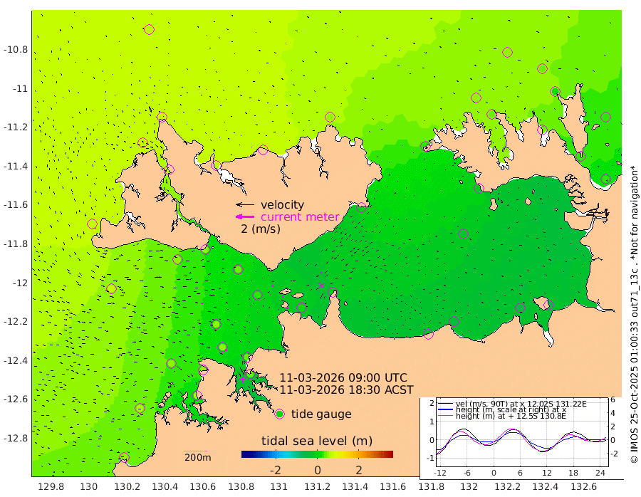 24cm/s -99T +4cm/s rms + 6cm/s 51T. Darwin_C1 52m 11cm/s -95T +4cm/s rms + 7cm/s -161T. Darwin_CW1 22m 1cm/s 93T +4cm/s rms + 8cm/s 61T. Darwin_CW2 34m 15cm/s -134T +3cm/s rms + 9cm/s 98T. Darwin_CW3 22m 7cm/s -90T +5cm/s rms + 7cm/s 88T. Darwin_C3 56m 17cm/s -116T +2cm/s rms + 9cm/s -126T. Darwin_CTbW 22m 22cm/s 93T +1cm/s rms + 1cm/s -47T. DARBGF 30m 24cm/s 130T +4cm/s rms + 3cm/s 80T. NRSDAR 19m 72cm Goodrich Bank 56cm Point Jenny 59cm Native Point 52cm Fish Reef 54cm Tapa Bay 73cm Point Fawcett (Offshore) 57cm Burge Point 54cm Munkunuwa 69cm Beagle A 39cm Parsons Bank 54cm Fenton Patches 30cm Hancox Shoal Area 36cm Nightcliff 41cm Darwin 55cm Charles Point Patches 10cm Glyde Point -34cm Chambers Bay -43cm Point Stuart -4cm Cape Hotham -27cm Christine Reef -55cm West Alligator Head -66cm East Field Island -20cm Two Hills Bay -3cm Camp Point 53cm Medina Inlet South 74cm South Barlow Point 77cm St. Asaph Bay 74cm Cape Van Dieman 74cm Snake Bay 69cm Cache Point 56cm Point Jahleel (Off) 29cm Cape Don 47cm Port Essington 44cm Smith Point - West 44cm NW Peacock Island 50cm North Of Jones Shoal 16cm Peacock Island 28cm Point David 41cm D'urville Point 23cm Copeland Island 29cm One Tree Point
