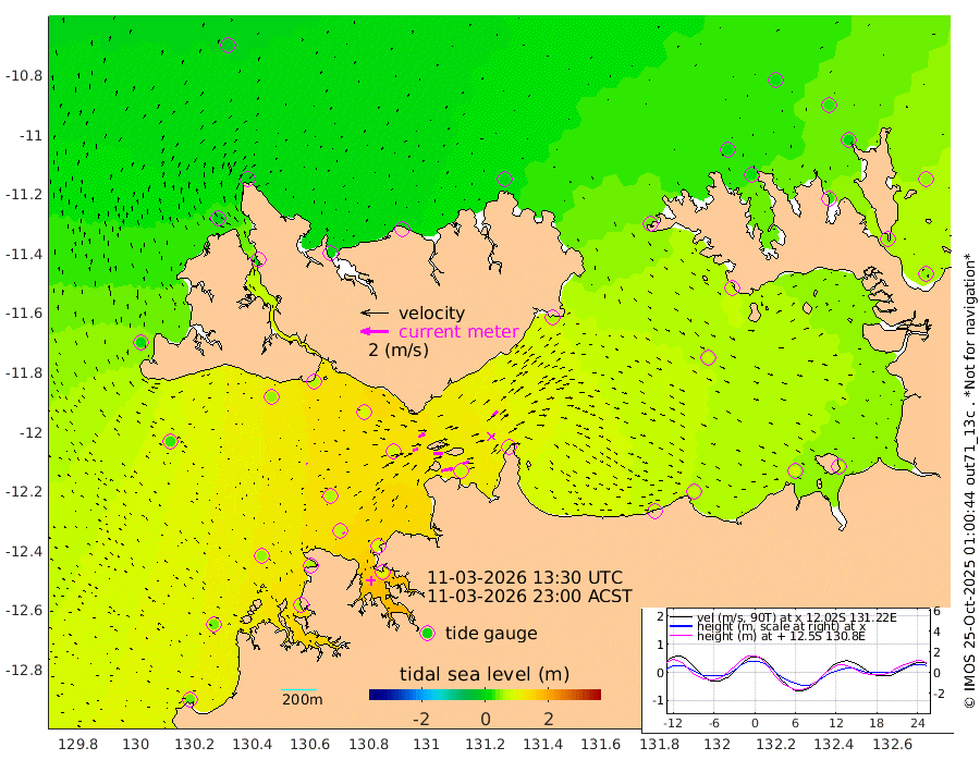 86cm/s 78T +4cm/s rms + 6cm/s 51T. Darwin_C1 52m 44cm/s 89T +4cm/s rms + 7cm/s -161T. Darwin_CW1 22m 38cm/s 75T +4cm/s rms + 8cm/s 61T. Darwin_CW2 34m 51cm/s 43T +3cm/s rms + 9cm/s 98T. Darwin_CW3 22m 67cm/s 90T +5cm/s rms + 7cm/s 88T. Darwin_C3 56m 50cm/s 65T +2cm/s rms + 9cm/s -126T. Darwin_CTbW 22m 5cm/s -48T +1cm/s rms + 1cm/s -47T. DARBGF 30m 10cm/s -23T +4cm/s rms + 3cm/s 80T. NRSDAR 19m -12cm Goodrich Bank 45cm Point Jenny 44cm Native Point 49cm Fish Reef 61cm Tapa Bay 11cm Point Fawcett (Offshore) 65cm Burge Point 51cm Munkunuwa 27cm Beagle A 82cm Parsons Bank 57cm Fenton Patches 83cm Hancox Shoal Area 83cm Nightcliff 91cm Darwin 73cm Charles Point Patches 76cm Glyde Point 77cm Chambers Bay 79cm Point Stuart 74cm Cape Hotham 69cm Christine Reef 84cm West Alligator Head 81cm East Field Island 71cm Two Hills Bay 64cm Camp Point 63cm Medina Inlet South 14cm South Barlow Point -4cm St. Asaph Bay -10cm Cape Van Dieman 3cm Snake Bay -7cm Cache Point 8cm Point Jahleel (Off) 40cm Cape Don 21cm Port Essington 21cm Smith Point - West 25cm NW Peacock Island 15cm North Of Jones Shoal 8cm Peacock Island 55cm Point David 30cm D'urville Point 56cm Copeland Island 51cm One Tree Point