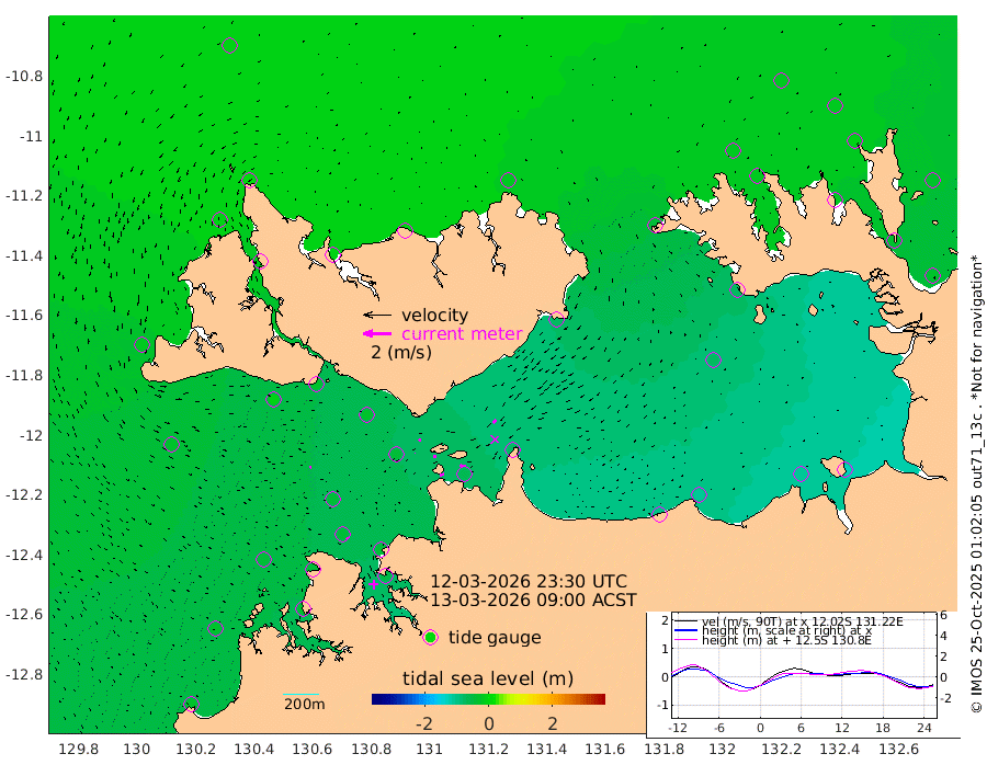 31cm/s -103T +4cm/s rms + 6cm/s 51T. Darwin_C1 52m 41cm/s -92T +4cm/s rms + 7cm/s -161T. Darwin_CW1 22m 2cm/s -75T +4cm/s rms + 8cm/s 61T. Darwin_CW2 34m 34cm/s -144T +3cm/s rms + 9cm/s 98T. Darwin_CW3 22m 21cm/s -84T +5cm/s rms + 7cm/s 88T. Darwin_C3 56m 18cm/s -114T +2cm/s rms + 9cm/s -126T. Darwin_CTbW 22m 12cm/s 98T +1cm/s rms + 1cm/s -47T. DARBGF 30m 15cm/s 124T +4cm/s rms + 3cm/s 80T. NRSDAR 19m 0cm Goodrich Bank -29cm Point Jenny -27cm Native Point -35cm Fish Reef -35cm Tapa Bay -18cm Point Fawcett (Offshore) -32cm Burge Point -9cm Munkunuwa -25cm Beagle A -26cm Parsons Bank -35cm Fenton Patches -39cm Hancox Shoal Area -42cm Nightcliff -45cm Darwin -41cm Charles Point Patches -66cm Glyde Point -95cm Chambers Bay -102cm Point Stuart -73cm Cape Hotham -77cm Christine Reef -111cm West Alligator Head -126cm East Field Island -79cm Two Hills Bay -76cm Camp Point -29cm Medina Inlet South 0cm South Barlow Point -2cm St. Asaph Bay 0cm Cape Van Dieman -3cm Snake Bay -8cm Cache Point -14cm Point Jahleel (Off) -34cm Cape Don -16cm Port Essington -12cm Smith Point - West -15cm NW Peacock Island -15cm North Of Jones Shoal -6cm Peacock Island -30cm Point David -14cm D'urville Point -31cm Copeland Island -30cm One Tree Point