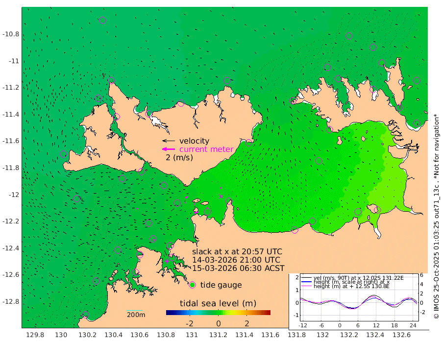 69cm/s -103T +4cm/s rms + 6cm/s 51T. Darwin_C1 52m 17cm/s -85T +4cm/s rms + 7cm/s -161T. Darwin_CW1 22m 13cm/s -99T +4cm/s rms + 8cm/s 61T. Darwin_CW2 34m 21cm/s -121T +3cm/s rms + 9cm/s 98T. Darwin_CW3 22m 12cm/s -88T +5cm/s rms + 7cm/s 88T. Darwin_C3 56m 48cm/s -116T +2cm/s rms + 9cm/s -126T. Darwin_CTbW 22m 23cm/s -88T +1cm/s rms + 1cm/s -47T. DARBGF 30m 24cm/s -60T +4cm/s rms + 3cm/s 80T. NRSDAR 19m -65cm Goodrich Bank -60cm Point Jenny -62cm Native Point -43cm Fish Reef -53cm Tapa Bay -65cm Point Fawcett (Offshore) -42cm Burge Point -43cm Munkunuwa -60cm Beagle A -38cm Parsons Bank -45cm Fenton Patches -37cm Hancox Shoal Area -40cm Nightcliff -31cm Darwin -44cm Charles Point Patches -16cm Glyde Point 8cm Chambers Bay 19cm Point Stuart -2cm Cape Hotham -9cm Christine Reef 25cm West Alligator Head 37cm East Field Island -3cm Two Hills Bay -5cm Camp Point -44cm Medina Inlet South -66cm South Barlow Point -67cm St. Asaph Bay -66cm Cape Van Dieman -65cm Snake Bay -65cm Cache Point -55cm Point Jahleel (Off) -41cm Cape Don -50cm Port Essington -56cm Smith Point - West -53cm NW Peacock Island -52cm North Of Jones Shoal -17cm Peacock Island -36cm Point David -53cm D'urville Point -32cm Copeland Island -37cm One Tree Point