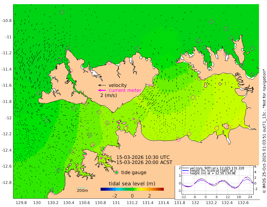 22cm/s -102T +4cm/s rms + 6cm/s 51T. Darwin_C1 52m 26cm/s 87T +4cm/s rms + 7cm/s -161T. Darwin_CW1 22m 8cm/s 88T +4cm/s rms + 8cm/s 61T. Darwin_CW2 34m 9cm/s 11T +3cm/s rms + 9cm/s 98T. Darwin_CW3 22m 44cm/s 91T +5cm/s rms + 7cm/s 88T. Darwin_C3 56m 23cm/s -117T +2cm/s rms + 9cm/s -126T. Darwin_CTbW 22m 23cm/s -80T +1cm/s rms + 1cm/s -47T. DARBGF 30m 27cm/s -52T +4cm/s rms + 3cm/s 80T. NRSDAR 19m 5cm Goodrich Bank 21cm Point Jenny 21cm Native Point 31cm Fish Reef 31cm Tapa Bay 9cm Point Fawcett (Offshore) 42cm Burge Point 23cm Munkunuwa 16cm Beagle A 34cm Parsons Bank 34cm Fenton Patches 38cm Hancox Shoal Area 28cm Nightcliff 57cm Darwin 54cm Charles Point Patches 58cm Glyde Point 71cm Chambers Bay 77cm Point Stuart 55cm Cape Hotham 60cm Christine Reef 85cm West Alligator Head 99cm East Field Island 56cm Two Hills Bay 63cm Camp Point 37cm Medina Inlet South 4cm South Barlow Point 2cm St. Asaph Bay 1cm Cape Van Dieman 2cm Snake Bay 4cm Cache Point 7cm Point Jahleel (Off) 21cm Cape Don 10cm Port Essington 1cm Smith Point - West 2cm NW Peacock Island 3cm North Of Jones Shoal 0cm Peacock Island 3cm Point David -1cm D'urville Point 2cm Copeland Island 7cm One Tree Point