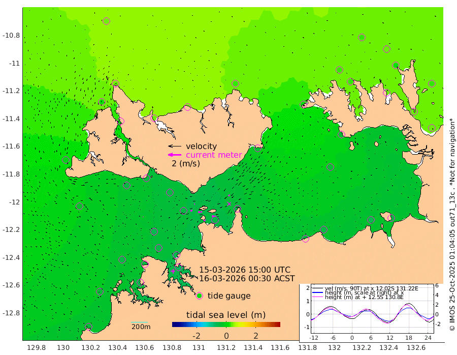 28cm/s -100T +4cm/s rms + 6cm/s 51T. Darwin_C1 52m 56cm/s -91T +4cm/s rms + 7cm/s -161T. Darwin_CW1 22m 32cm/s -108T +4cm/s rms + 8cm/s 61T. Darwin_CW2 34m 28cm/s -139T +3cm/s rms + 9cm/s 98T. Darwin_CW3 22m 57cm/s -92T +5cm/s rms + 7cm/s 88T. Darwin_C3 56m 7cm/s -106T +2cm/s rms + 9cm/s -126T. Darwin_CTbW 22m 4cm/s 147T +1cm/s rms + 1cm/s -47T. DARBGF 30m 6cm/s 161T +4cm/s rms + 3cm/s 80T. NRSDAR 19m 38cm Goodrich Bank -36cm Point Jenny -34cm Native Point -53cm Fish Reef -46cm Tapa Bay -1cm Point Fawcett (Offshore) -63cm Burge Point -51cm Munkunuwa -33cm Beagle A -52cm Parsons Bank -60cm Fenton Patches -52cm Hancox Shoal Area -65cm Nightcliff -69cm Darwin -55cm Charles Point Patches -51cm Glyde Point -52cm Chambers Bay -52cm Point Stuart -45cm Cape Hotham -42cm Christine Reef -60cm West Alligator Head -66cm East Field Island -34cm Two Hills Bay -36cm Camp Point -54cm Medina Inlet South 8cm South Barlow Point 16cm St. Asaph Bay 39cm Cape Van Dieman 39cm Snake Bay 37cm Cache Point 27cm Point Jahleel (Off) 6cm Cape Don 30cm Port Essington 32cm Smith Point - West 37cm NW Peacock Island 33cm North Of Jones Shoal 12cm Peacock Island 40cm Point David 37cm D'urville Point 37cm Copeland Island 33cm One Tree Point