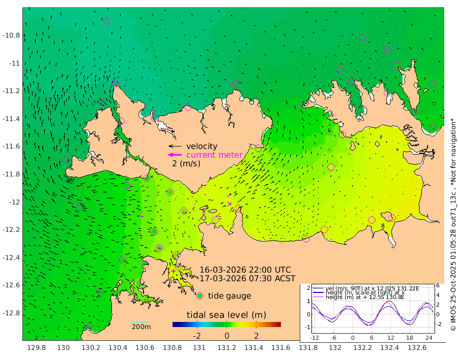4cm/s -138T +4cm/s rms + 6cm/s 51T. Darwin_C1 52m 22cm/s 88T +4cm/s rms + 7cm/s -161T. Darwin_CW1 22m 20cm/s 64T +4cm/s rms + 8cm/s 61T. Darwin_CW2 34m 19cm/s 32T +3cm/s rms + 9cm/s 98T. Darwin_CW3 22m 39cm/s 89T +5cm/s rms + 7cm/s 88T. Darwin_C3 56m 9cm/s -118T +2cm/s rms + 9cm/s -126T. Darwin_CTbW 22m 34cm/s -82T +1cm/s rms + 1cm/s -47T. DARBGF 30m 44cm/s -54T +4cm/s rms + 3cm/s 80T. NRSDAR 19m -79cm Goodrich Bank -16cm Point Jenny -17cm Native Point 3cm Fish Reef 8cm Tapa Bay -58cm Point Fawcett (Offshore) 18cm Burge Point 2cm Munkunuwa -30cm Beagle A 28cm Parsons Bank 15cm Fenton Patches 40cm Hancox Shoal Area 35cm Nightcliff 50cm Darwin 25cm Charles Point Patches 58cm Glyde Point 92cm Chambers Bay 103cm Point Stuart 69cm Cape Hotham 68cm Christine Reef 118cm West Alligator Head 136cm East Field Island 64cm Two Hills Bay 63cm Camp Point 10cm Medina Inlet South -63cm South Barlow Point -73cm St. Asaph Bay -81cm Cape Van Dieman -75cm Snake Bay -76cm Cache Point -54cm Point Jahleel (Off) -17cm Cape Don -47cm Port Essington -51cm Smith Point - West -47cm NW Peacock Island -55cm North Of Jones Shoal -17cm Peacock Island -15cm Point David -46cm D'urville Point -9cm Copeland Island -19cm One Tree Point