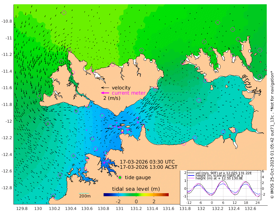 73cm/s -101T +4cm/s rms + 6cm/s 51T. Darwin_C1 52m 78cm/s -93T +4cm/s rms + 7cm/s -161T. Darwin_CW1 22m 50cm/s -105T +4cm/s rms + 8cm/s 61T. Darwin_CW2 34m 62cm/s -139T +3cm/s rms + 9cm/s 98T. Darwin_CW3 22m 96cm/s -91T +5cm/s rms + 7cm/s 88T. Darwin_C3 56m 33cm/s -116T +2cm/s rms + 9cm/s -126T. Darwin_CTbW 22m 18cm/s 114T +1cm/s rms + 1cm/s -47T. DARBGF 30m 24cm/s 139T +4cm/s rms + 3cm/s 80T. NRSDAR 19m 36cm Goodrich Bank -95cm Point Jenny -94cm Native Point -107cm Fish Reef -125cm Tapa Bay -19cm Point Fawcett (Offshore) -135cm Burge Point -101cm Munkunuwa -67cm Beagle A -136cm Parsons Bank -127cm Fenton Patches -149cm Hancox Shoal Area -147cm Nightcliff -171cm Darwin -149cm Charles Point Patches -145cm Glyde Point -156cm Chambers Bay -152cm Point Stuart -132cm Cape Hotham -130cm Christine Reef -165cm West Alligator Head -174cm East Field Island -117cm Two Hills Bay -128cm Camp Point -120cm Medina Inlet South -5cm South Barlow Point 15cm St. Asaph Bay 37cm Cape Van Dieman 31cm Snake Bay 31cm Cache Point 10cm Point Jahleel (Off) -42cm Cape Don -3cm Port Essington 4cm Smith Point - West 2cm NW Peacock Island 16cm North Of Jones Shoal 4cm Peacock Island -31cm Point David -1cm D'urville Point -35cm Copeland Island -27cm One Tree Point
