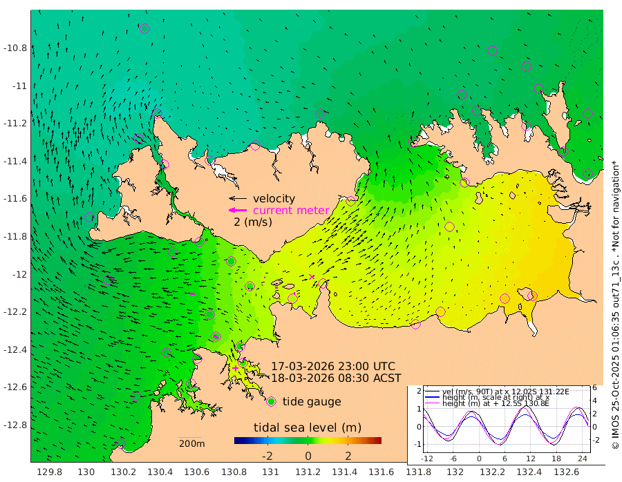 10cm/s -115T +4cm/s rms + 6cm/s 51T. Darwin_C1 52m 15cm/s 82T +4cm/s rms + 7cm/s -161T. Darwin_CW1 22m 9cm/s 59T +4cm/s rms + 8cm/s 61T. Darwin_CW2 34m 20cm/s 30T +3cm/s rms + 9cm/s 98T. Darwin_CW3 22m 30cm/s 91T +5cm/s rms + 7cm/s 88T. Darwin_C3 56m 13cm/s -119T +2cm/s rms + 9cm/s -126T. Darwin_CTbW 22m 52cm/s -84T +1cm/s rms + 1cm/s -47T. DARBGF 30m 64cm/s -54T +4cm/s rms + 3cm/s 80T. NRSDAR 19m -89cm Goodrich Bank -40cm Point Jenny -42cm Native Point -23cm Fish Reef -16cm Tapa Bay -82cm Point Fawcett (Offshore) -6cm Burge Point -27cm Munkunuwa -56cm Beagle A 8cm Parsons Bank -9cm Fenton Patches 26cm Hancox Shoal Area 15cm Nightcliff 32cm Darwin 4cm Charles Point Patches 59cm Glyde Point 116cm Chambers Bay 133cm Point Stuart 77cm Cape Hotham 93cm Christine Reef 154cm West Alligator Head 182cm East Field Island 82cm Two Hills Bay 78cm Camp Point -15cm Medina Inlet South -86cm South Barlow Point -92cm St. Asaph Bay -94cm Cape Van Dieman -88cm Snake Bay -87cm Cache Point -62cm Point Jahleel (Off) -20cm Cape Don -54cm Port Essington -59cm Smith Point - West -53cm NW Peacock Island -62cm North Of Jones Shoal -20cm Peacock Island -18cm Point David -53cm D'urville Point -11cm Copeland Island -23cm One Tree Point