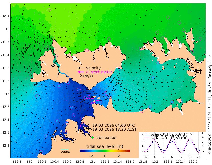 157cm/s -101T +4cm/s rms + 6cm/s 51T. Darwin_C1 52m 126cm/s -91T +4cm/s rms + 7cm/s -161T. Darwin_CW1 22m 95cm/s -106T +4cm/s rms + 8cm/s 61T. Darwin_CW2 34m 90cm/s -136T +3cm/s rms + 9cm/s 98T. Darwin_CW3 22m 158cm/s -91T +5cm/s rms + 7cm/s 88T. Darwin_C3 56m 83cm/s -116T +2cm/s rms + 9cm/s -126T. Darwin_CTbW 22m 11cm/s -141T +1cm/s rms + 1cm/s -47T. DARBGF 30m 11cm/s -162T +4cm/s rms + 3cm/s 80T. NRSDAR 19m 39cm Goodrich Bank -172cm Point Jenny -170cm Native Point -180cm Fish Reef -207cm Tapa Bay -54cm Point Fawcett (Offshore) -225cm Burge Point -188cm Munkunuwa -130cm Beagle A -226cm Parsons Bank -210cm Fenton Patches -232cm Hancox Shoal Area -238cm Nightcliff -259cm Darwin -227cm Charles Point Patches -195cm Glyde Point -179cm Chambers Bay -166cm Point Stuart -167cm Cape Hotham -160cm Christine Reef -179cm West Alligator Head -173cm East Field Island -137cm Two Hills Bay -148cm Camp Point -200cm Medina Inlet South -40cm South Barlow Point -5cm St. Asaph Bay 37cm Cape Van Dieman 29cm Snake Bay 32cm Cache Point 6cm Point Jahleel (Off) -62cm Cape Don -10cm Port Essington -6cm Smith Point - West -4cm NW Peacock Island 17cm North Of Jones Shoal 3cm Peacock Island -39cm Point David -11cm D'urville Point -44cm Copeland Island -35cm One Tree Point
