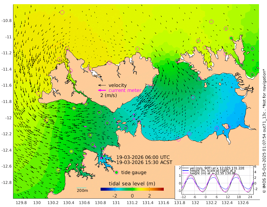 19cm/s 80T +4cm/s rms + 6cm/s 51T. Darwin_C1 52m 3cm/s 90T +4cm/s rms + 7cm/s -161T. Darwin_CW1 22m 6cm/s 71T +4cm/s rms + 8cm/s 61T. Darwin_CW2 34m 40cm/s -147T +3cm/s rms + 9cm/s 98T. Darwin_CW3 22m 30cm/s -87T +5cm/s rms + 7cm/s 88T. Darwin_C3 56m 31cm/s 62T +2cm/s rms + 9cm/s -126T. Darwin_CTbW 22m 72cm/s 96T +1cm/s rms + 1cm/s -47T. DARBGF 30m 78cm/s 127T +4cm/s rms + 3cm/s 80T. NRSDAR 19m 93cm Goodrich Bank 57cm Point Jenny 60cm Native Point 50cm Fish Reef 36cm Tapa Bay 99cm Point Fawcett (Offshore) 29cm Burge Point 56cm Munkunuwa 83cm Beagle A 14cm Parsons Bank 36cm Fenton Patches -12cm Hancox Shoal Area 9cm Nightcliff -12cm Darwin 12cm Charles Point Patches -59cm Glyde Point -143cm Chambers Bay -159cm Point Stuart -79cm Cape Hotham -121cm Christine Reef -183cm West Alligator Head -220cm East Field Island -97cm Two Hills Bay -96cm Camp Point 38cm Medina Inlet South 104cm South Barlow Point 107cm St. Asaph Bay 100cm Cape Van Dieman 98cm Snake Bay 90cm Cache Point 66cm Point Jahleel (Off) 15cm Cape Don 54cm Port Essington 61cm Smith Point - West 54cm NW Peacock Island 63cm North Of Jones Shoal 21cm Peacock Island 19cm Point David 55cm D'urville Point 12cm Copeland Island 21cm One Tree Point