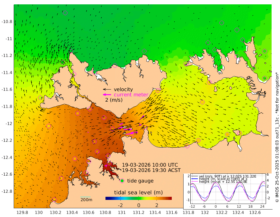 190cm/s 78T +4cm/s rms + 6cm/s 51T. Darwin_C1 52m 143cm/s 93T +4cm/s rms + 7cm/s -161T. Darwin_CW1 22m 121cm/s 72T +4cm/s rms + 8cm/s 61T. Darwin_CW2 34m 117cm/s 45T +3cm/s rms + 9cm/s 98T. Darwin_CW3 22m 190cm/s 89T +5cm/s rms + 7cm/s 88T. Darwin_C3 56m 92cm/s 66T +2cm/s rms + 9cm/s -126T. Darwin_CTbW 22m 17cm/s 55T +1cm/s rms + 1cm/s -47T. DARBGF 30m 11cm/s 43T +4cm/s rms + 3cm/s 80T. NRSDAR 19m -36cm Goodrich Bank 187cm Point Jenny 187cm Native Point 202cm Fish Reef 222cm Tapa Bay 64cm Point Fawcett (Offshore) 252cm Burge Point 213cm Munkunuwa 154cm Beagle A 246cm Parsons Bank 237cm Fenton Patches 243cm Hancox Shoal Area 262cm Nightcliff 278cm Darwin 238cm Charles Point Patches 205cm Glyde Point 172cm Chambers Bay 163cm Point Stuart 173cm Cape Hotham 157cm Christine Reef 177cm West Alligator Head 167cm East Field Island 138cm Two Hills Bay 146cm Camp Point 222cm Medina Inlet South 55cm South Barlow Point 14cm St. Asaph Bay -33cm Cape Van Dieman -21cm Snake Bay -31cm Cache Point -3cm Point Jahleel (Off) 62cm Cape Don 5cm Port Essington 3cm Smith Point - West -1cm NW Peacock Island -19cm North Of Jones Shoal -5cm Peacock Island 27cm Point David 6cm D'urville Point 30cm Copeland Island 25cm One Tree Point