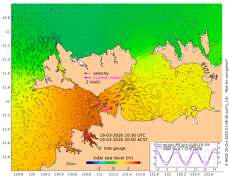 161cm/s 79T +4cm/s rms + 6cm/s 51T. Darwin_C1 52m 124cm/s 93T +4cm/s rms + 7cm/s -161T. Darwin_CW1 22m 105cm/s 71T +4cm/s rms + 8cm/s 61T. Darwin_CW2 34m 105cm/s 45T +3cm/s rms + 9cm/s 98T. Darwin_CW3 22m 169cm/s 89T +5cm/s rms + 7cm/s 88T. Darwin_C3 56m 77cm/s 65T +2cm/s rms + 9cm/s -126T. Darwin_CTbW 22m 14cm/s -41T +1cm/s rms + 1cm/s -47T. DARBGF 30m 28cm/s -37T +4cm/s rms + 3cm/s 80T. NRSDAR 19m -58cm Goodrich Bank 141cm Point Jenny 140cm Native Point 156cm Fish Reef 175cm Tapa Bay 25cm Point Fawcett (Offshore) 205cm Burge Point 164cm Munkunuwa 107cm Beagle A 202cm Parsons Bank 190cm Fenton Patches 206cm Hancox Shoal Area 218cm Nightcliff 237cm Darwin 195cm Charles Point Patches 189cm Glyde Point 184cm Chambers Bay 182cm Point Stuart 167cm Cape Hotham 166cm Christine Reef 201cm West Alligator Head 204cm East Field Island 143cm Two Hills Bay 149cm Camp Point 176cm Medina Inlet South 17cm South Barlow Point -19cm St. Asaph Bay -58cm Cape Van Dieman -46cm Snake Bay -53cm Cache Point -22cm Point Jahleel (Off) 46cm Cape Don -14cm Port Essington -18cm Smith Point - West -20cm NW Peacock Island -37cm North Of Jones Shoal -11cm Peacock Island 12cm Point David -14cm D'urville Point 17cm Copeland Island 11cm One Tree Point
