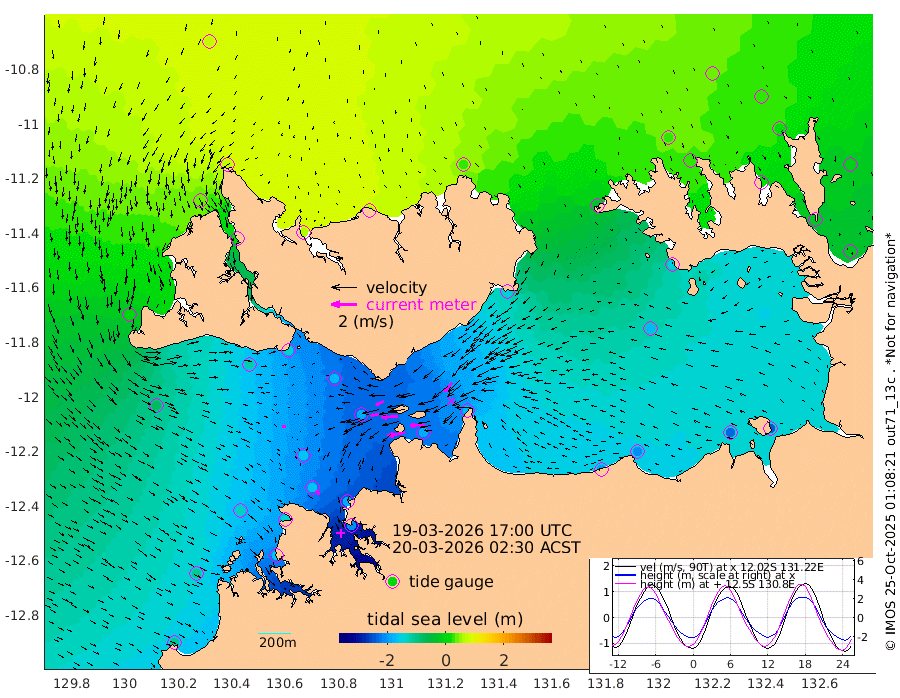 138cm/s -101T +4cm/s rms + 6cm/s 51T. Darwin_C1 52m 115cm/s -92T +4cm/s rms + 7cm/s -161T. Darwin_CW1 22m 66cm/s -106T +4cm/s rms + 8cm/s 61T. Darwin_CW2 34m 93cm/s -137T +3cm/s rms + 9cm/s 98T. Darwin_CW3 22m 127cm/s -90T +5cm/s rms + 7cm/s 88T. Darwin_C3 56m 69cm/s -116T +2cm/s rms + 9cm/s -126T. Darwin_CTbW 22m 29cm/s 109T +1cm/s rms + 1cm/s -47T. DARBGF 30m 40cm/s 138T +4cm/s rms + 3cm/s 80T. NRSDAR 19m 69cm Goodrich Bank -105cm Point Jenny -104cm Native Point -124cm Fish Reef -141cm Tapa Bay 2cm Point Fawcett (Offshore) -167cm Burge Point -123cm Munkunuwa -78cm Beagle A -170cm Parsons Bank -160cm Fenton Patches -182cm Hancox Shoal Area -189cm Nightcliff -206cm Darwin -161cm Charles Point Patches -182cm Glyde Point -198cm Chambers Bay -207cm Point Stuart -174cm Cape Hotham -179cm Christine Reef -231cm West Alligator Head -245cm East Field Island -157cm Two Hills Bay -157cm Camp Point -139cm Medina Inlet South 11cm South Barlow Point 40cm St. Asaph Bay 71cm Cape Van Dieman 59cm Snake Bay 63cm Cache Point 28cm Point Jahleel (Off) -38cm Cape Don 23cm Port Essington 24cm Smith Point - West 23cm NW Peacock Island 42cm North Of Jones Shoal 13cm Peacock Island -15cm Point David 19cm D'urville Point -21cm Copeland Island -10cm One Tree Point