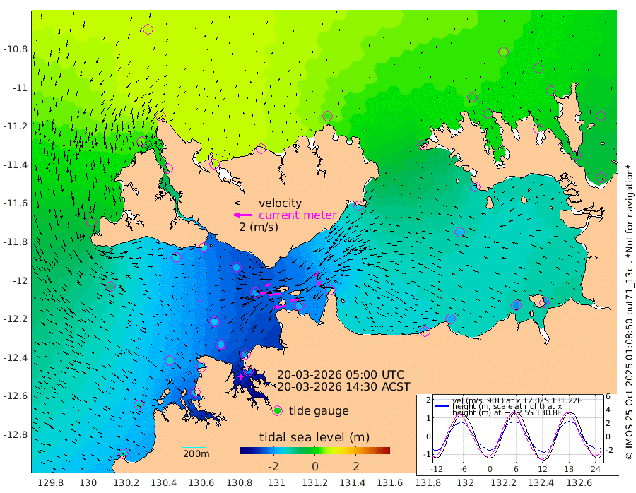 140cm/s -101T +4cm/s rms + 6cm/s 51T. Darwin_C1 52m 113cm/s -91T +4cm/s rms + 7cm/s -161T. Darwin_CW1 22m 80cm/s -106T +4cm/s rms + 8cm/s 61T. Darwin_CW2 34m 88cm/s -136T +3cm/s rms + 9cm/s 98T. Darwin_CW3 22m 146cm/s -90T +5cm/s rms + 7cm/s 88T. Darwin_C3 56m 69cm/s -116T +2cm/s rms + 9cm/s -126T. Darwin_CTbW 22m 19cm/s 120T +1cm/s rms + 1cm/s -47T. DARBGF 30m 29cm/s 146T +4cm/s rms + 3cm/s 80T. NRSDAR 19m 71cm Goodrich Bank -124cm Point Jenny -122cm Native Point -133cm Fish Reef -160cm Tapa Bay -8cm Point Fawcett (Offshore) -180cm Burge Point -143cm Munkunuwa -79cm Beagle A -187cm Parsons Bank -163cm Fenton Patches -197cm Hancox Shoal Area -197cm Nightcliff -218cm Darwin -179cm Charles Point Patches -178cm Glyde Point -189cm Chambers Bay -185cm Point Stuart -161cm Cape Hotham -170cm Christine Reef -204cm West Alligator Head -208cm East Field Island -142cm Two Hills Bay -147cm Camp Point -154cm Medina Inlet South 4cm South Barlow Point 36cm St. Asaph Bay 70cm Cape Van Dieman 63cm Snake Bay 64cm Cache Point 32cm Point Jahleel (Off) -42cm Cape Don 17cm Port Essington 20cm Smith Point - West 20cm NW Peacock Island 42cm North Of Jones Shoal 12cm Peacock Island -20cm Point David 14cm D'urville Point -26cm Copeland Island -15cm One Tree Point