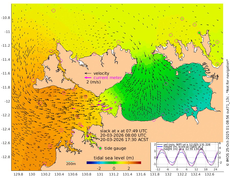 158cm/s 78T +4cm/s rms + 6cm/s 51T. Darwin_C1 52m 119cm/s 87T +4cm/s rms + 7cm/s -161T. Darwin_CW1 22m 89cm/s 74T +4cm/s rms + 8cm/s 61T. Darwin_CW2 34m 46cm/s 58T +3cm/s rms + 9cm/s 98T. Darwin_CW3 22m 105cm/s 87T +5cm/s rms + 7cm/s 88T. Darwin_C3 56m 100cm/s 63T +2cm/s rms + 9cm/s -126T. Darwin_CTbW 22m 87cm/s 91T +1cm/s rms + 1cm/s -47T. DARBGF 30m 87cm/s 120T +4cm/s rms + 3cm/s 80T. NRSDAR 19m 81cm Goodrich Bank 214cm Point Jenny 217cm Native Point 220cm Fish Reef 223cm Tapa Bay 167cm Point Fawcett (Offshore) 232cm Burge Point 234cm Munkunuwa 213cm Beagle A 217cm Parsons Bank 228cm Fenton Patches 188cm Hancox Shoal Area 216cm Nightcliff 215cm Darwin 215cm Charles Point Patches 101cm Glyde Point -23cm Chambers Bay -47cm Point Stuart 53cm Cape Hotham -15cm Christine Reef -66cm West Alligator Head -117cm East Field Island 4cm Two Hills Bay 12cm Camp Point 222cm Medina Inlet South 164cm South Barlow Point 135cm St. Asaph Bay 93cm Cape Van Dieman 99cm Snake Bay 83cm Cache Point 79cm Point Jahleel (Off) 73cm Cape Don 77cm Port Essington 82cm Smith Point - West 73cm NW Peacock Island 65cm North Of Jones Shoal 24cm Peacock Island 63cm Point David 81cm D'urville Point 58cm Copeland Island 61cm One Tree Point