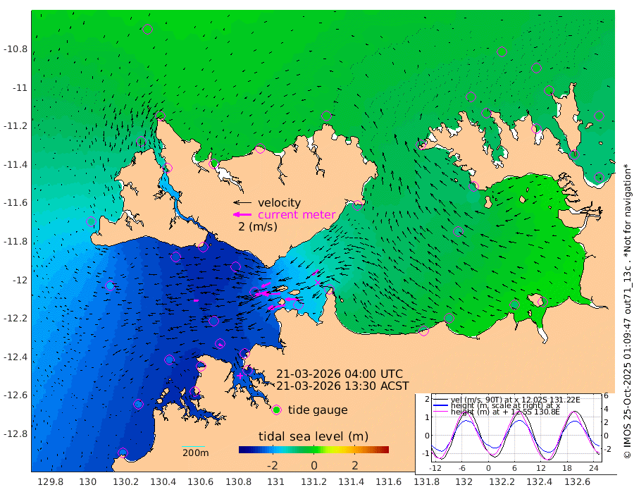 201cm/s -102T +4cm/s rms + 6cm/s 51T. Darwin_C1 52m 153cm/s -89T +4cm/s rms + 7cm/s -161T. Darwin_CW1 22m 139cm/s -108T +4cm/s rms + 8cm/s 61T. Darwin_CW2 34m 90cm/s -130T +3cm/s rms + 9cm/s 98T. Darwin_CW3 22m 195cm/s -91T +5cm/s rms + 7cm/s 88T. Darwin_C3 56m 110cm/s -115T +2cm/s rms + 9cm/s -126T. Darwin_CTbW 22m 55cm/s -96T +1cm/s rms + 1cm/s -47T. DARBGF 30m 44cm/s -73T +4cm/s rms + 3cm/s 80T. NRSDAR 19m 7cm Goodrich Bank -222cm Point Jenny -222cm Native Point -231cm Fish Reef -253cm Tapa Bay -107cm Point Fawcett (Offshore) -273cm Burge Point -258cm Munkunuwa -183cm Beagle A -274cm Parsons Bank -252cm Fenton Patches -257cm Hancox Shoal Area -272cm Nightcliff -288cm Darwin -260cm Charles Point Patches -177cm Glyde Point -99cm Chambers Bay -79cm Point Stuart -133cm Cape Hotham -92cm Christine Reef -79cm West Alligator Head -41cm East Field Island -87cm Two Hills Bay -92cm Camp Point -250cm Medina Inlet South -99cm South Barlow Point -55cm St. Asaph Bay -2cm Cape Van Dieman -11cm Snake Bay 2cm Cache Point -18cm Point Jahleel (Off) -68cm Cape Don -32cm Port Essington -32cm Smith Point - West -25cm NW Peacock Island -4cm North Of Jones Shoal -4cm Peacock Island -49cm Point David -36cm D'urville Point -51cm Copeland Island -44cm One Tree Point