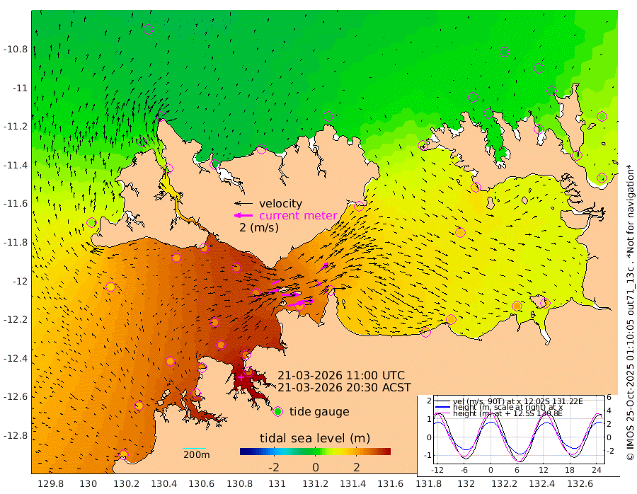 198cm/s 78T +4cm/s rms + 6cm/s 51T. Darwin_C1 52m 147cm/s 92T +4cm/s rms + 7cm/s -161T. Darwin_CW1 22m 119cm/s 72T +4cm/s rms + 8cm/s 61T. Darwin_CW2 34m 122cm/s 44T +3cm/s rms + 9cm/s 98T. Darwin_CW3 22m 196cm/s 89T +5cm/s rms + 7cm/s 88T. Darwin_C3 56m 93cm/s 65T +2cm/s rms + 9cm/s -126T. Darwin_CTbW 22m 12cm/s 35T +1cm/s rms + 1cm/s -47T. DARBGF 30m 13cm/s 15T +4cm/s rms + 3cm/s 80T. NRSDAR 19m -49cm Goodrich Bank 176cm Point Jenny 176cm Native Point 194cm Fish Reef 215cm Tapa Bay 48cm Point Fawcett (Offshore) 246cm Burge Point 208cm Munkunuwa 140cm Beagle A 251cm Parsons Bank 230cm Fenton Patches 246cm Hancox Shoal Area 255cm Nightcliff 279cm Darwin 232cm Charles Point Patches 210cm Glyde Point 178cm Chambers Bay 179cm Point Stuart 183cm Cape Hotham 162cm Christine Reef 194cm West Alligator Head 183cm East Field Island 151cm Two Hills Bay 151cm Camp Point 214cm Medina Inlet South 43cm South Barlow Point -3cm St. Asaph Bay -45cm Cape Van Dieman -29cm Snake Bay -42cm Cache Point -8cm Point Jahleel (Off) 63cm Cape Don 5cm Port Essington 4cm Smith Point - West 3cm NW Peacock Island -25cm North Of Jones Shoal -5cm Peacock Island 46cm Point David 12cm D'urville Point 50cm Copeland Island 38cm One Tree Point